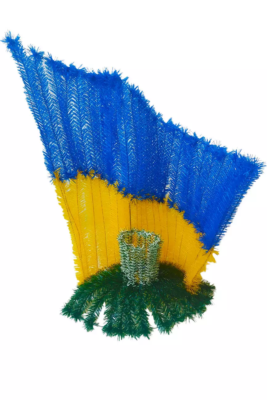 Арка зі штучної хвої на підставці з вазой та прапором України,