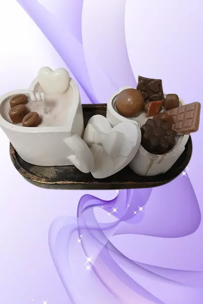 ❤️ Аромасвічка "Шоколадне серце" – стильна гіпсова вазочка у формі сердечка, наповнена ароматними соєвими свічками у вигляді шоколадних цукерок. Їх можна використовувати як арома-саше, щоб насолоджуватися глибоким солодким ароматом шоколаду навіть без запалювання.
