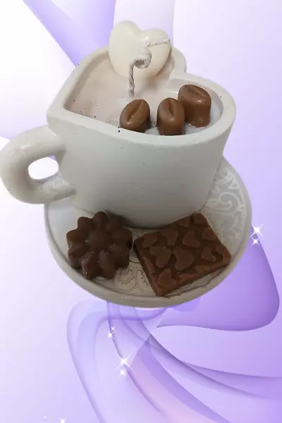 Розпочніть день із вишуканого аромату "Ранкової кави з шоколадом"! Ця елегантна аромасвічка із соєвого воску виконана у гіпсовому кашпо у формі витонченої кавової чашечки та доповнена декоративним блюдцем. Поруч із чашечкою розташувалися ароматні шоколадні цукерки, які можна використовувати як арома-саше – їхній насичений теплий аромат створить атмосферу затишку та насолоди.