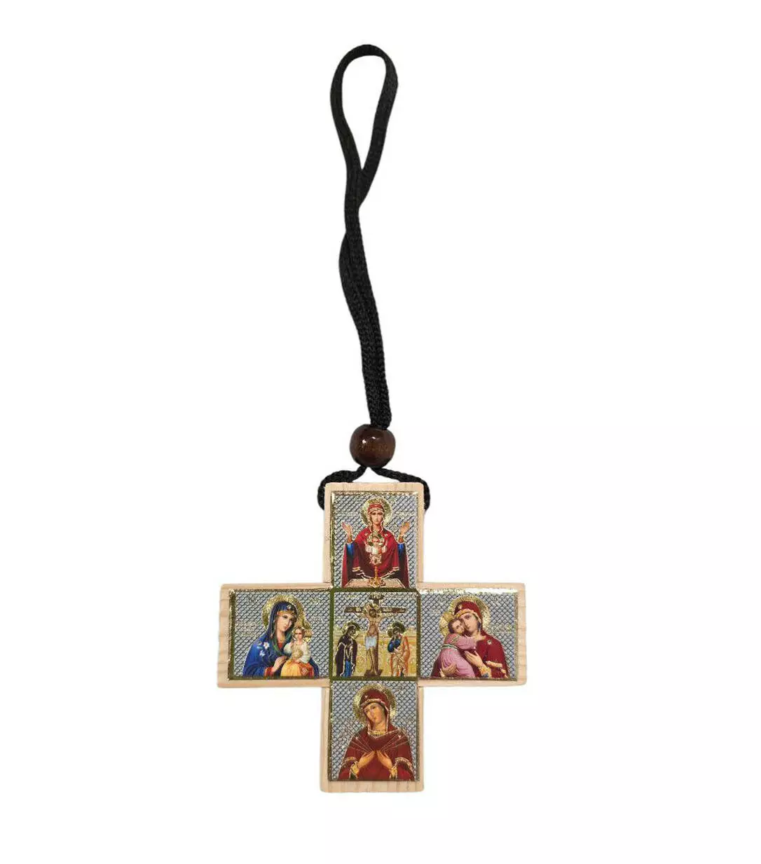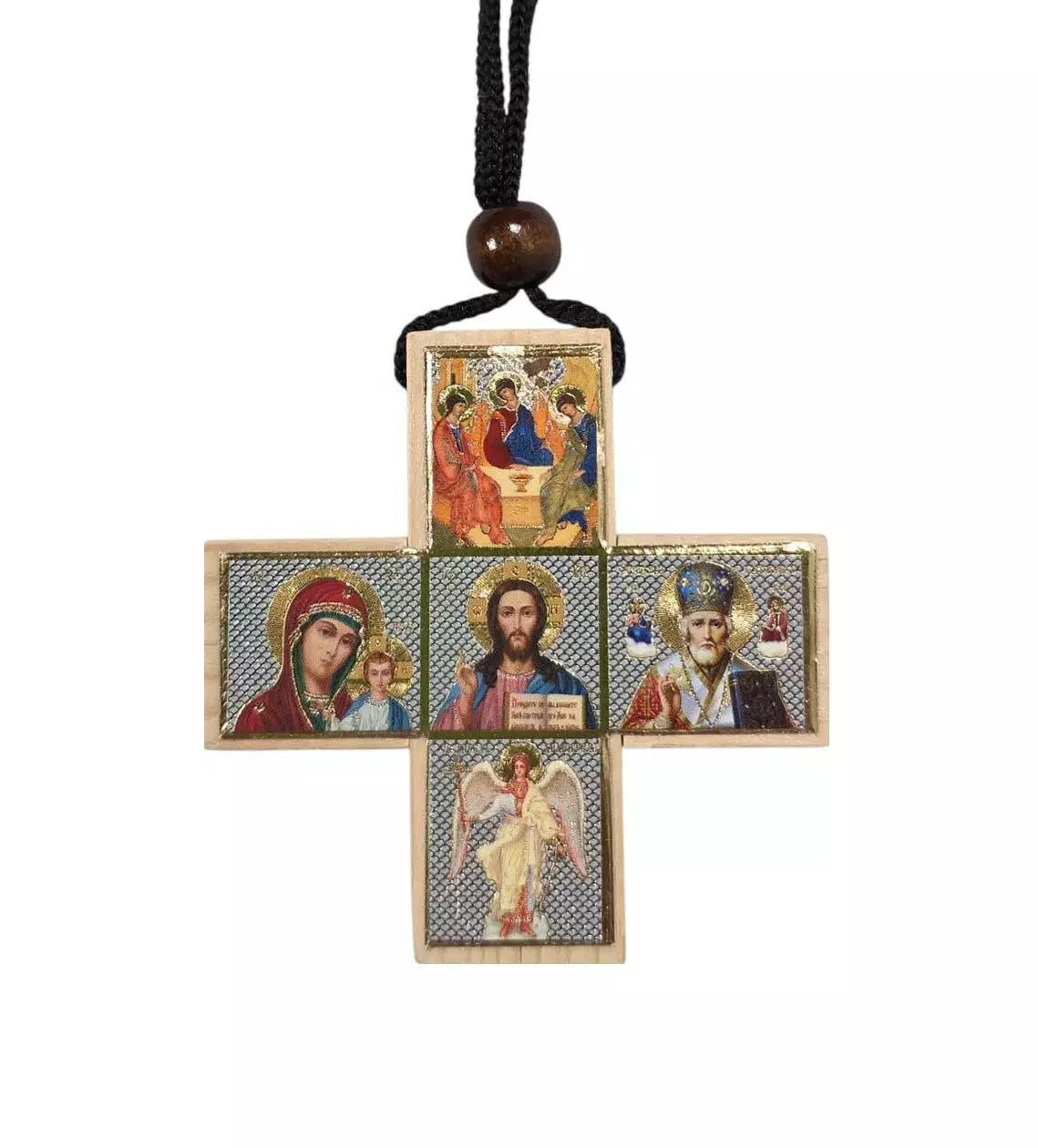 Автопідвіска з ликами святих хрест дерево 6,5*6,5 см
