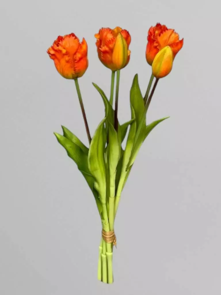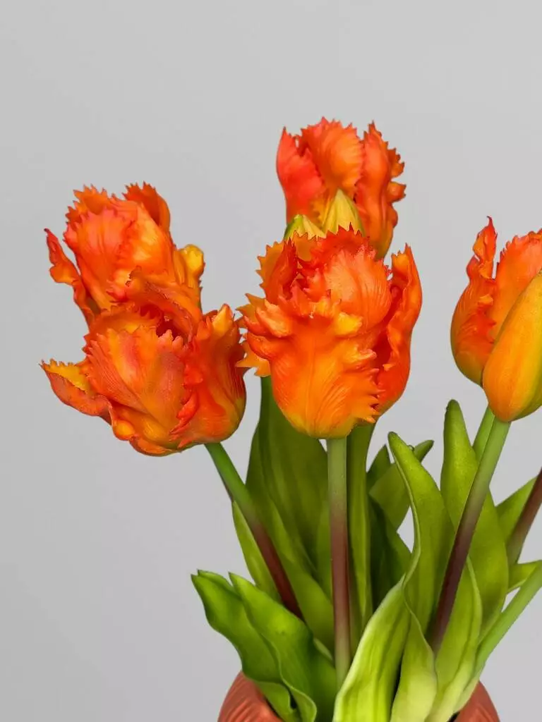 Букет штучних латексних кучерявих тюльпанів, 5 шт, помаранчевий, 40 см