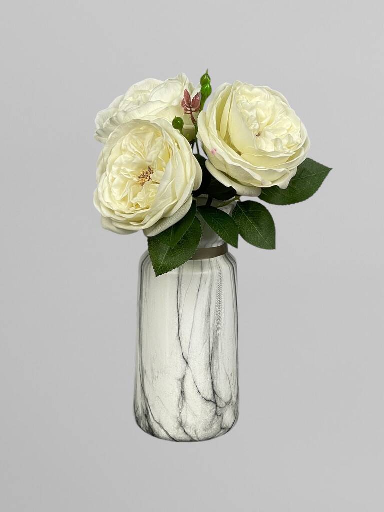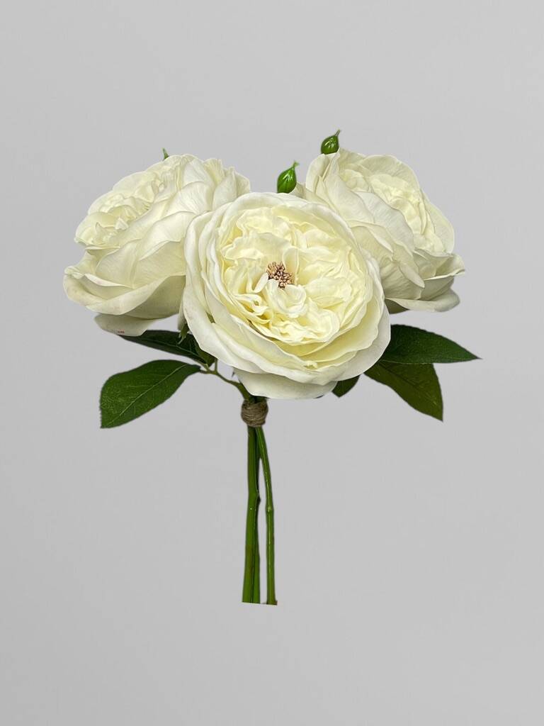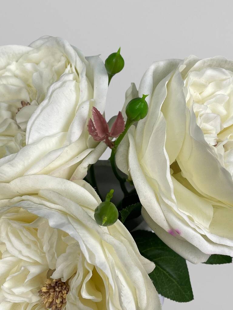 Букет штучних троянд Девіда Остіна (3 шт. у букеті), білий, 27 см