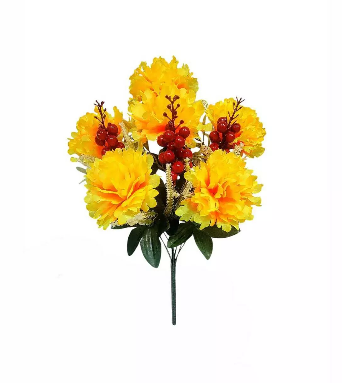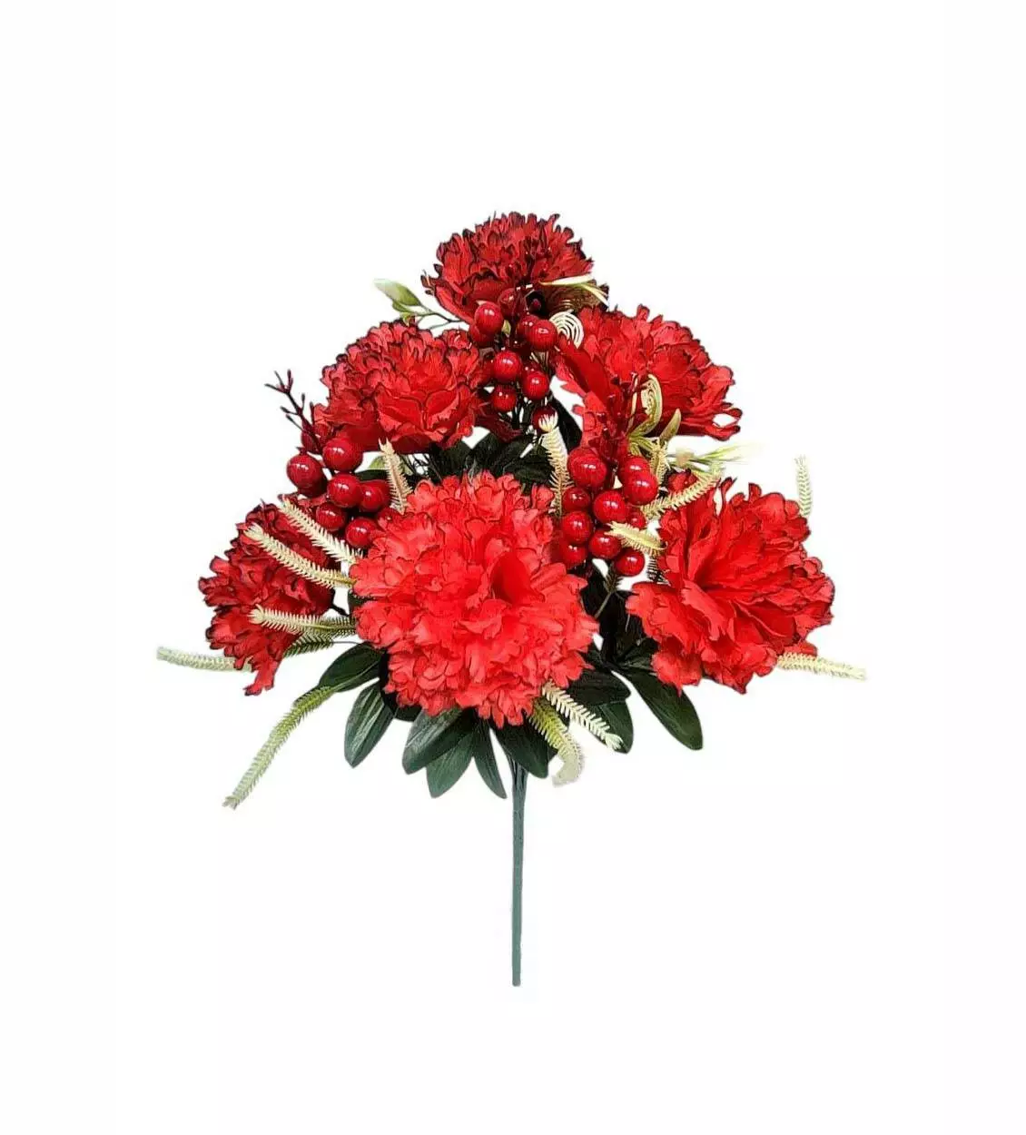 Букет штучний гвоздика з шовку, калина з пінопласту на 9 голів ( 6