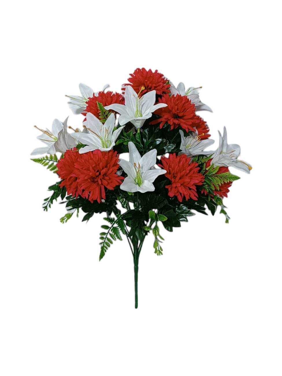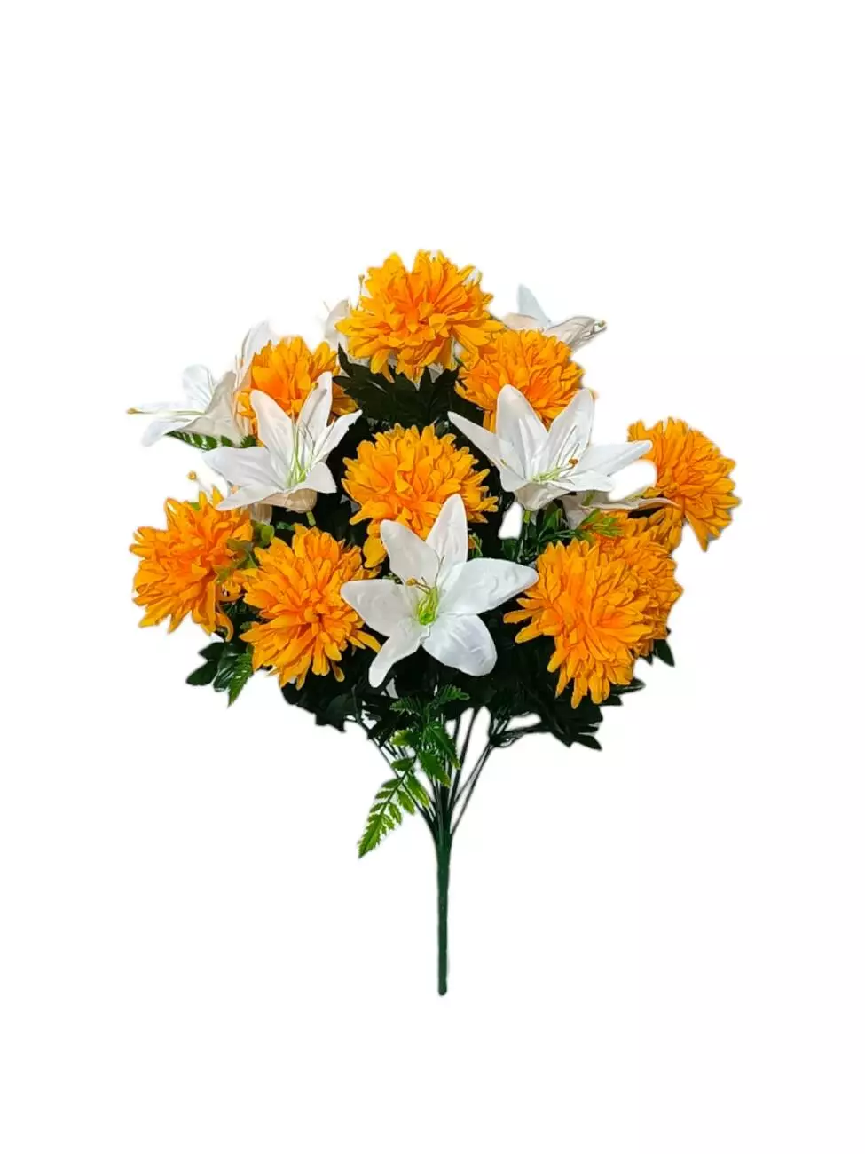 Штучний букет із хризантем та лілії з шовку на 18 голів, 8 - голів