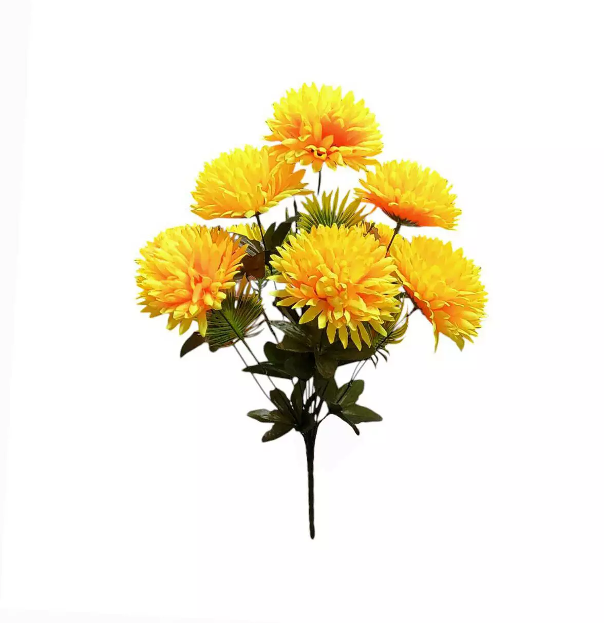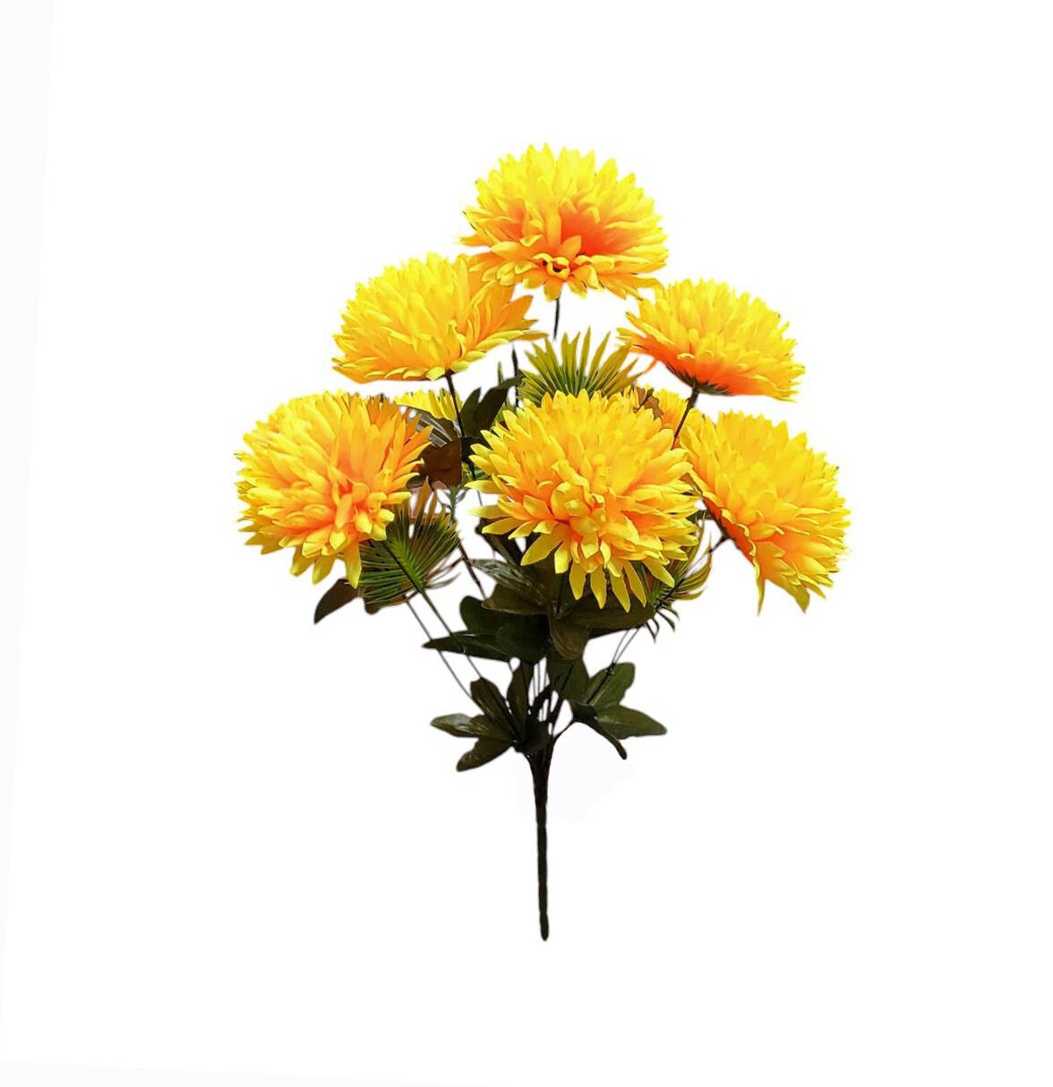 Штучний букет хризантеми щільний шовк на 9 голів 57 см. У прозорій