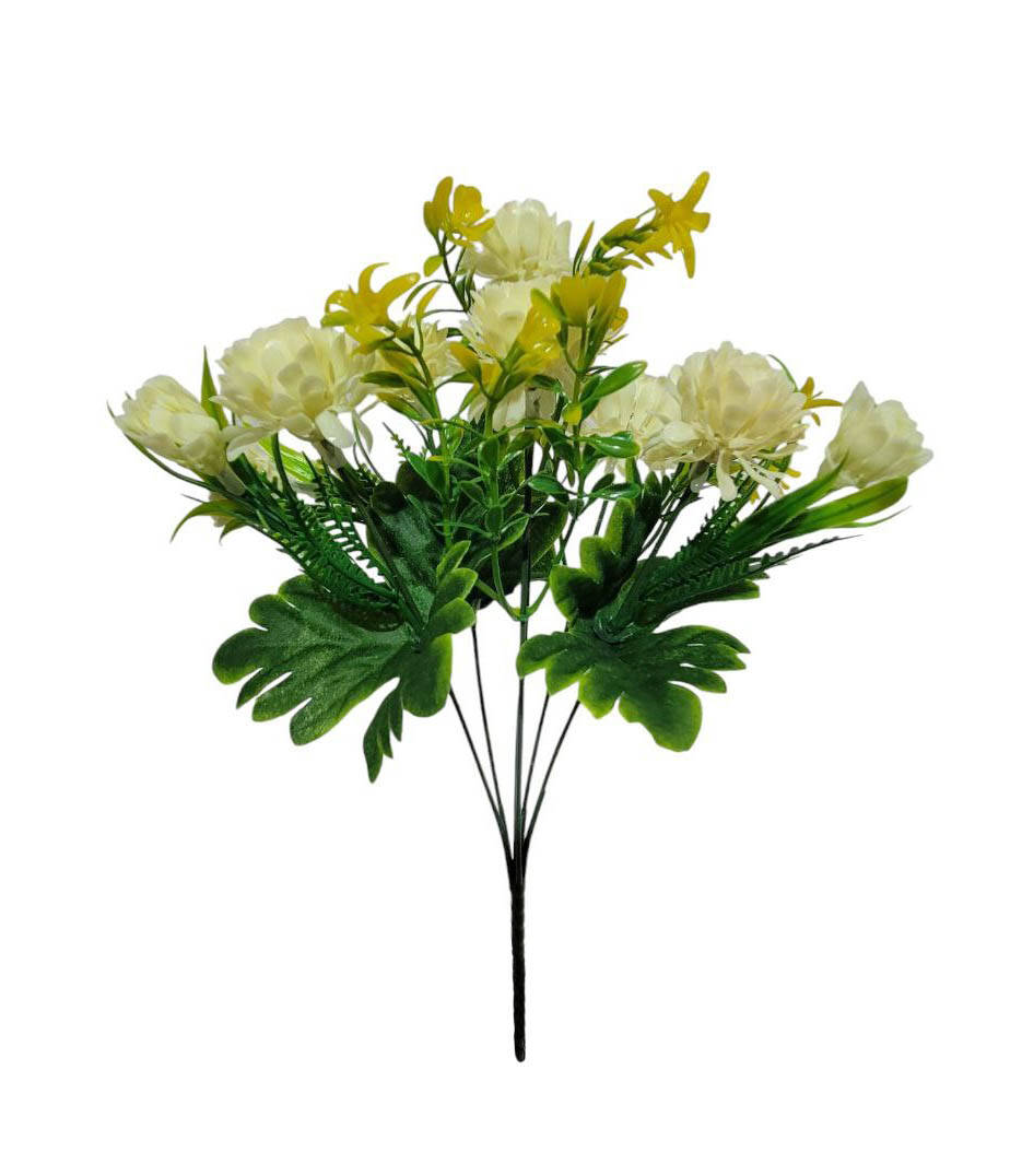 Букет штучний хризантема пластмасова з жовтими добавками на 6
