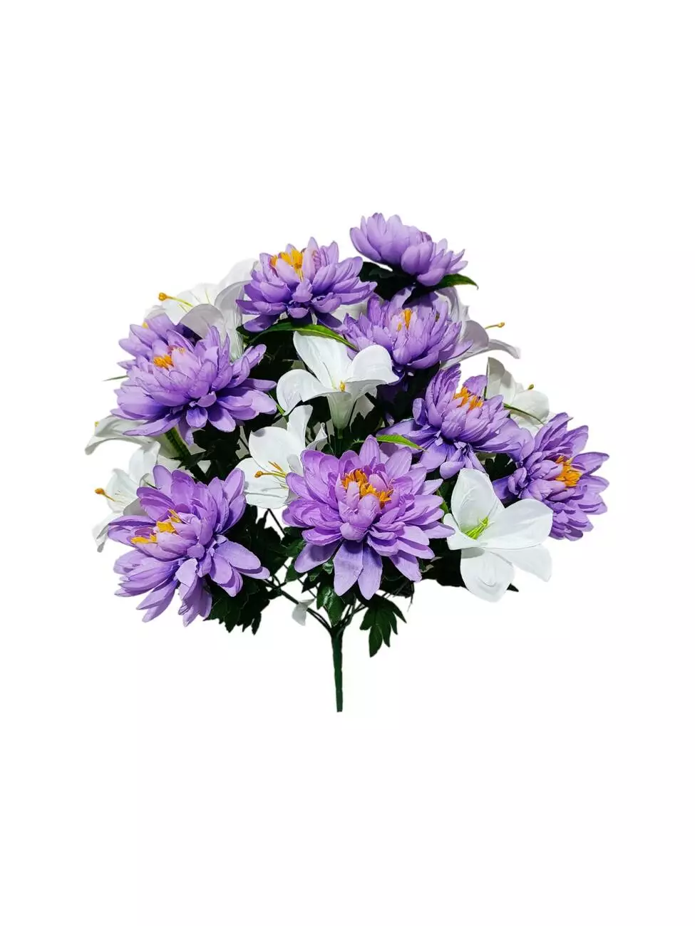 голов белых лилий, 10 голов цветных астр. Высота 50 см. В фабричной