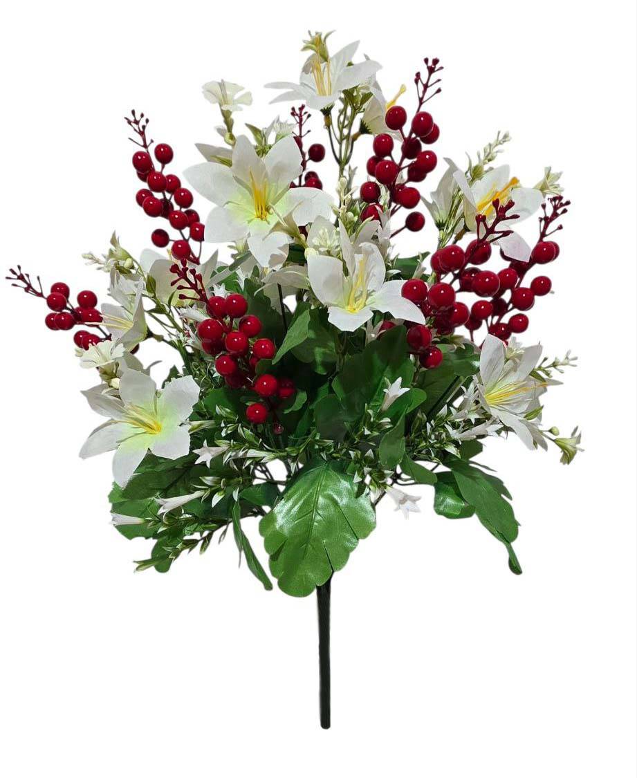Букет штучний лілія з сатину, ягоди з пенопласту та пластмасова