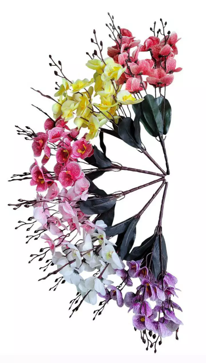 Букет штучний орхідея бавовна 5 гілок 42 см 12 шт в уп