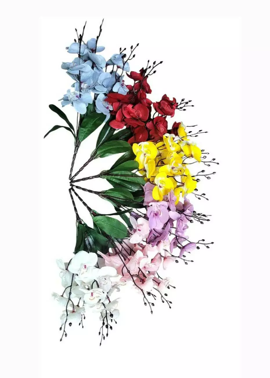 Букет штучний орхідеї з щільної бавовни на 5 гілок, 4 шовкових