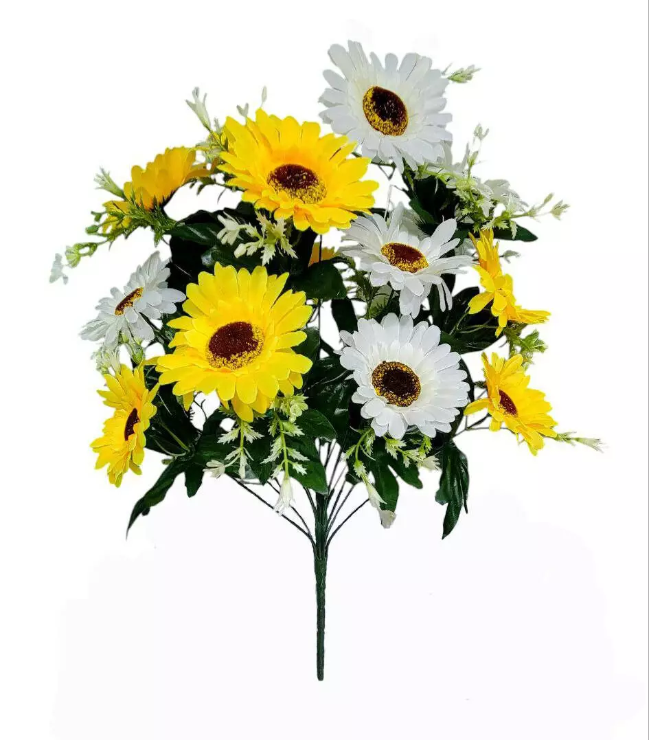 Букет штучний ромашка шовк двокольорова 18 голів 60 см 1 шт в уп