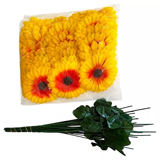 Штучний букет соняшника з бавовни на 6 голів висотой 37 см, розмір