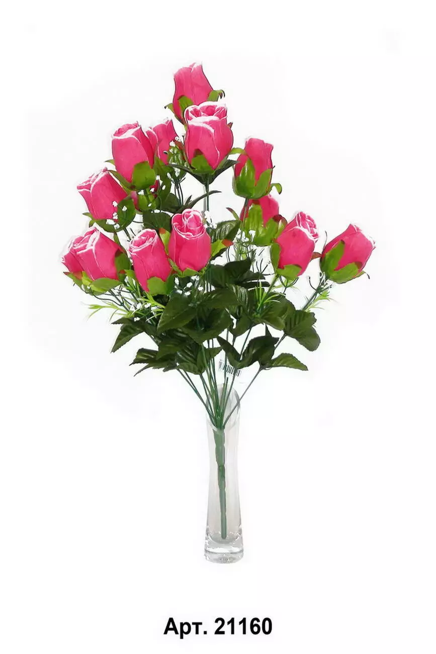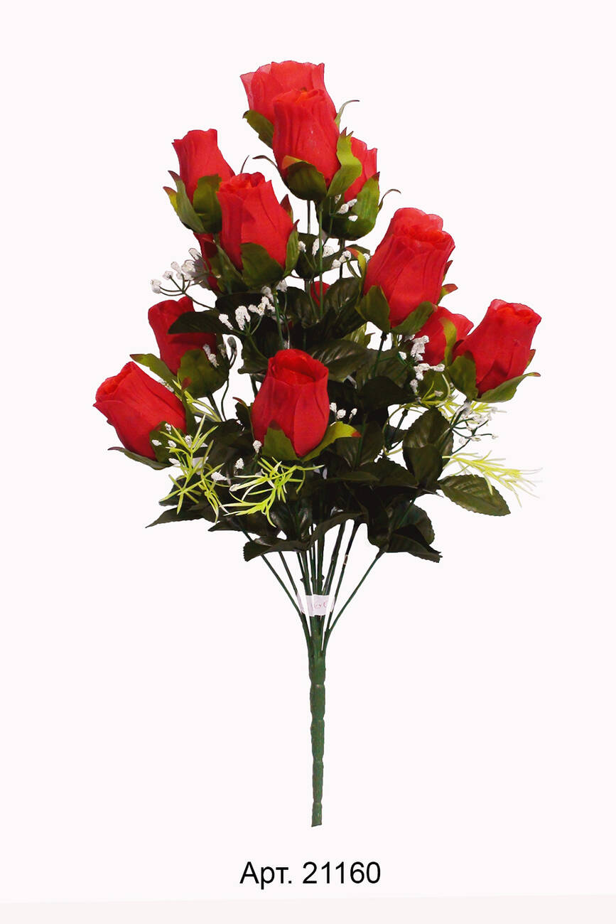 Букет штучний троянда бутон шовк 14 голів 56 см 10 шт в уп