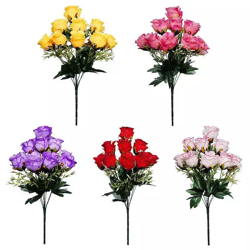 Букет штучний троянда бутон шовк 9 голів 31 см 6 шт в уп