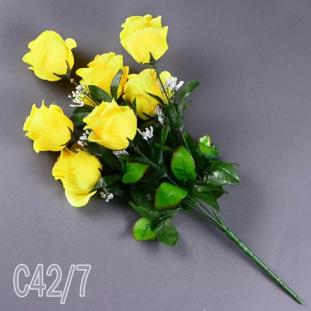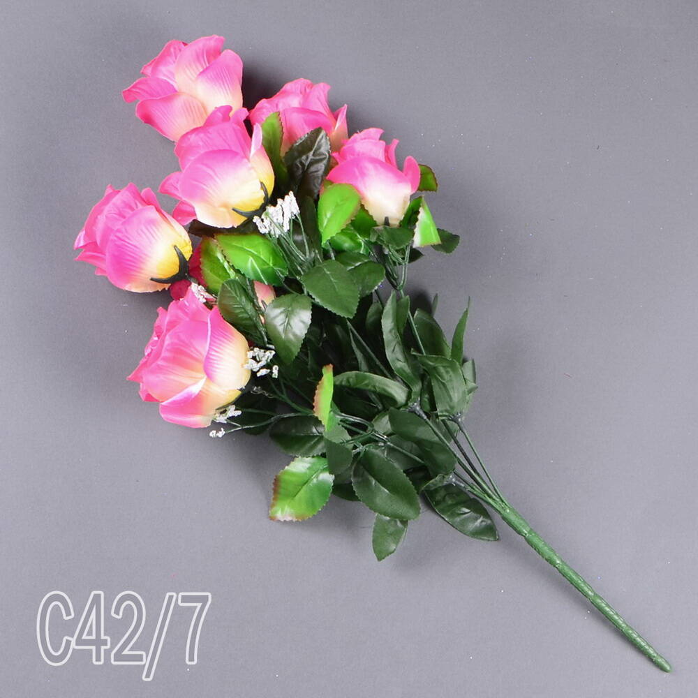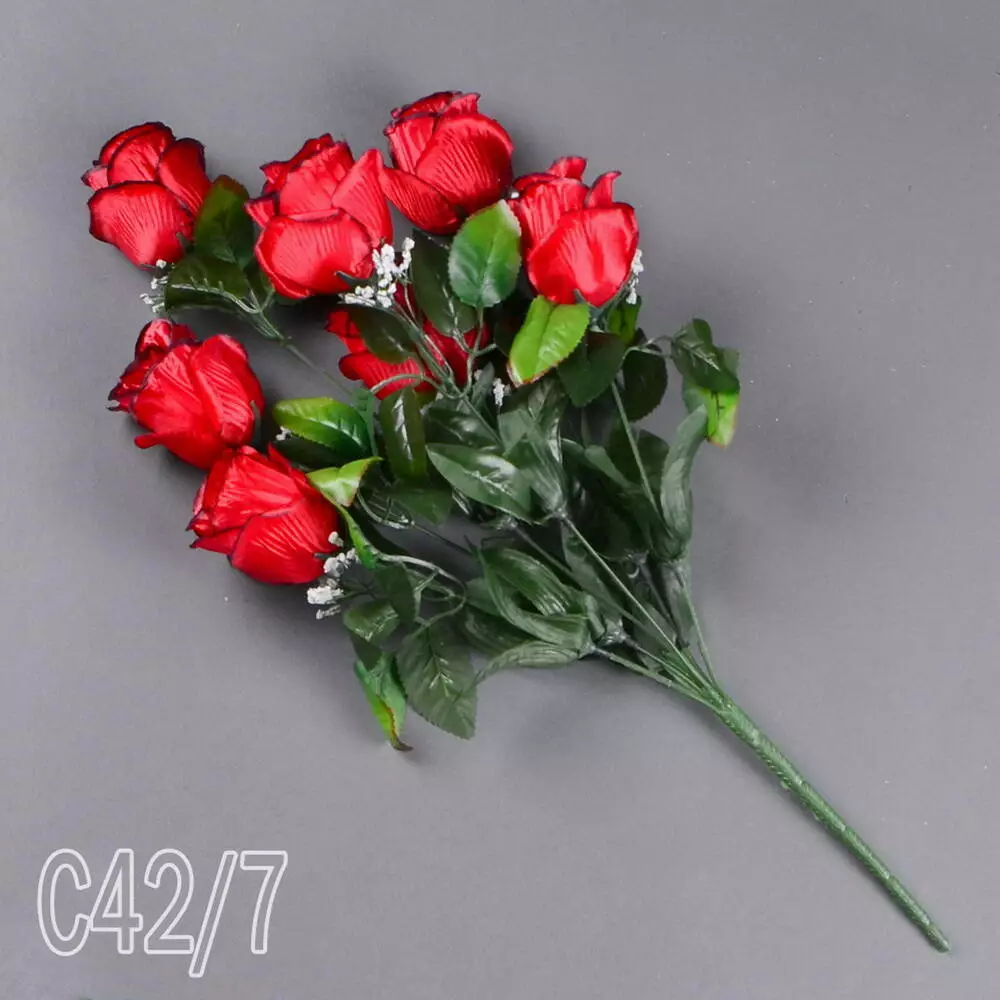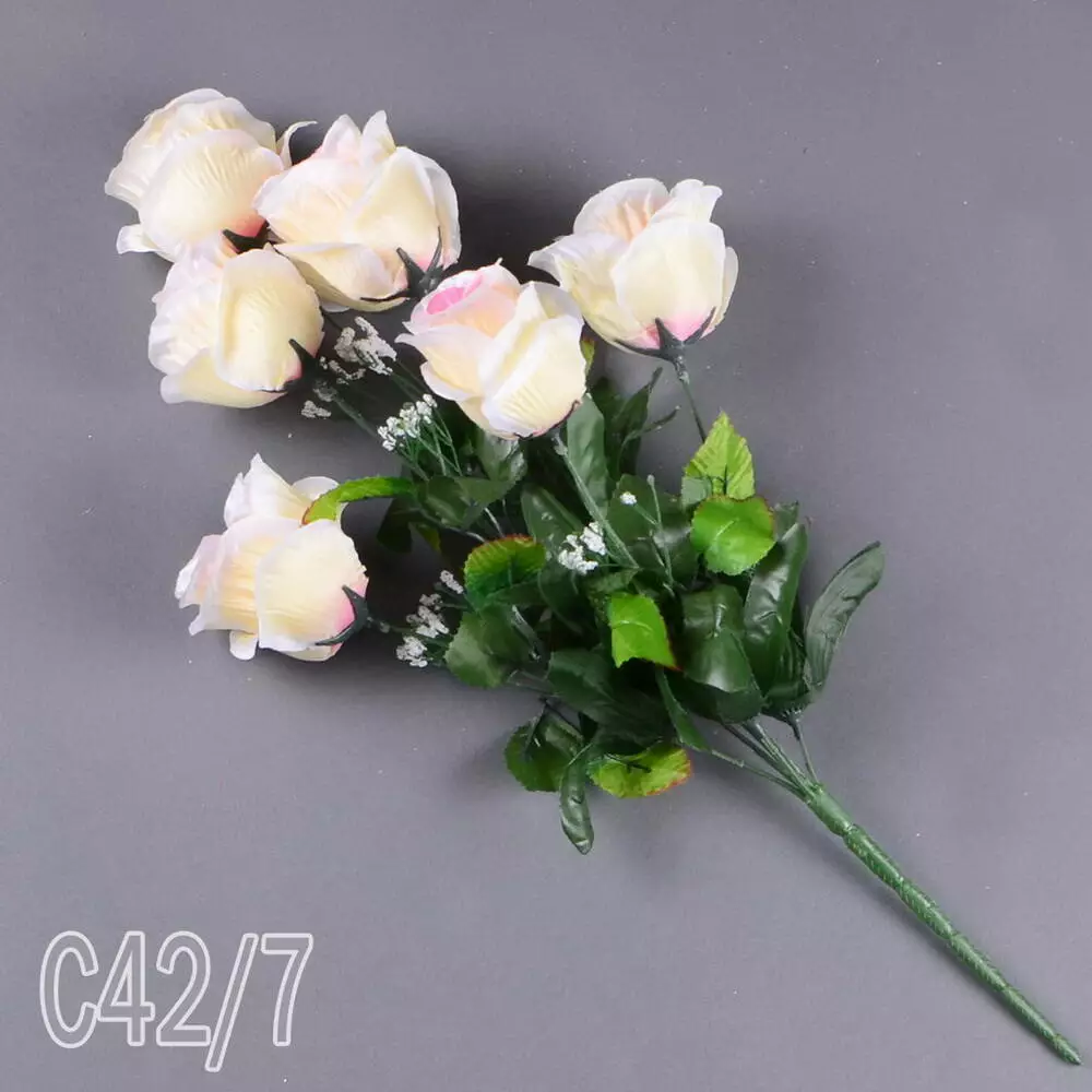 Букет штучний троянда бутон з гіпсофілою атлас 7 г 54см 14шт