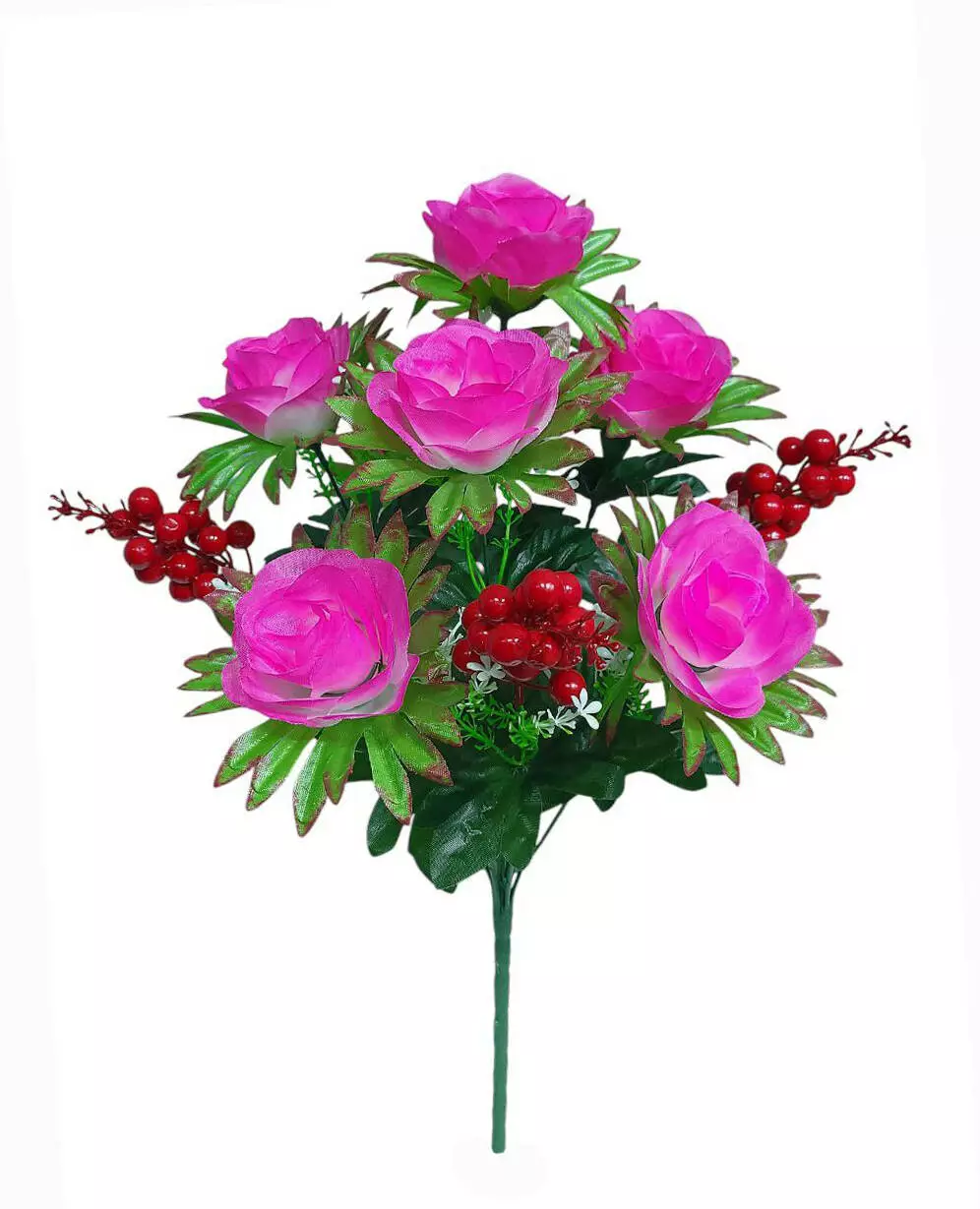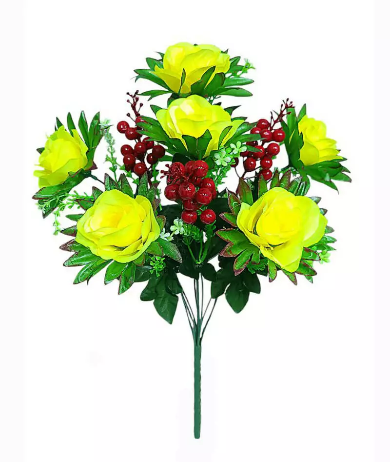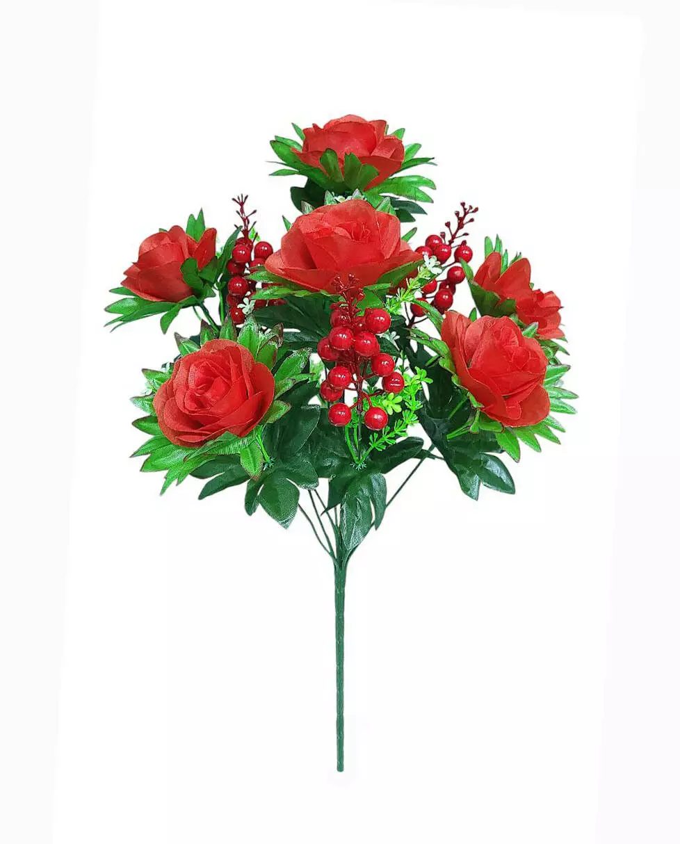 Букет штучний троянда з шовку на 7 голів, калина з пінопласту на 3