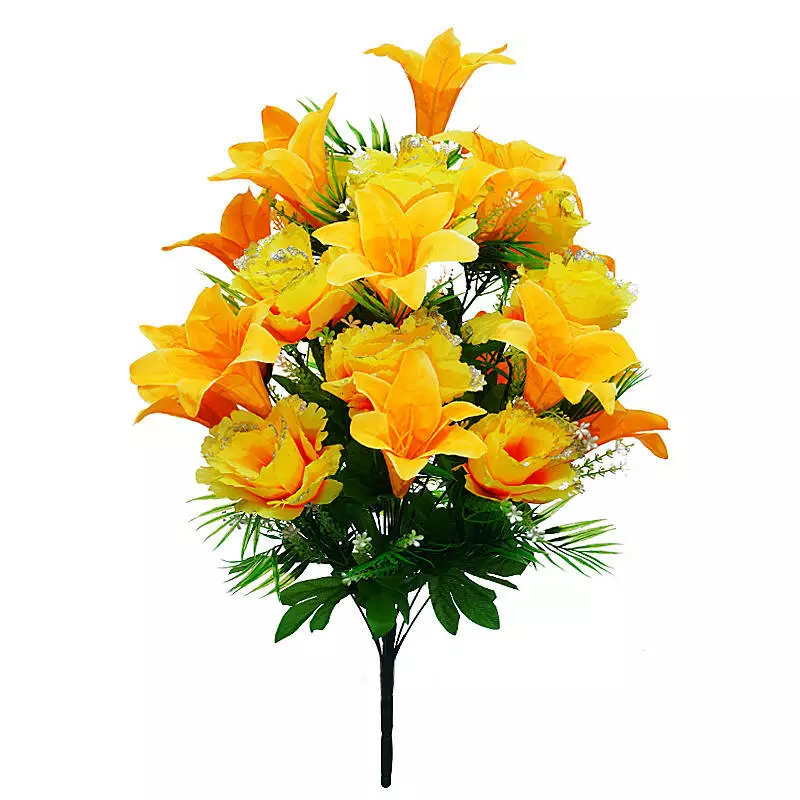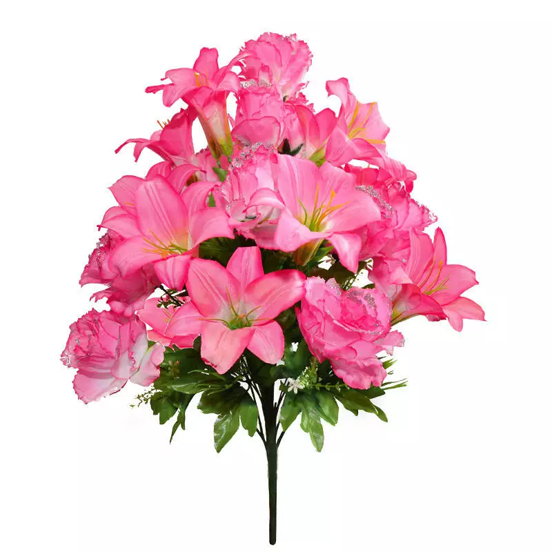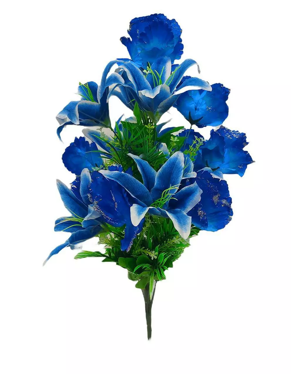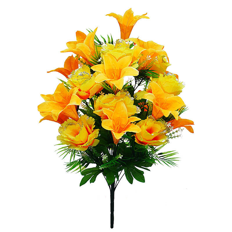 Букет троянди з шовку з лілією з щільної бавовни на 16 голів 66 см