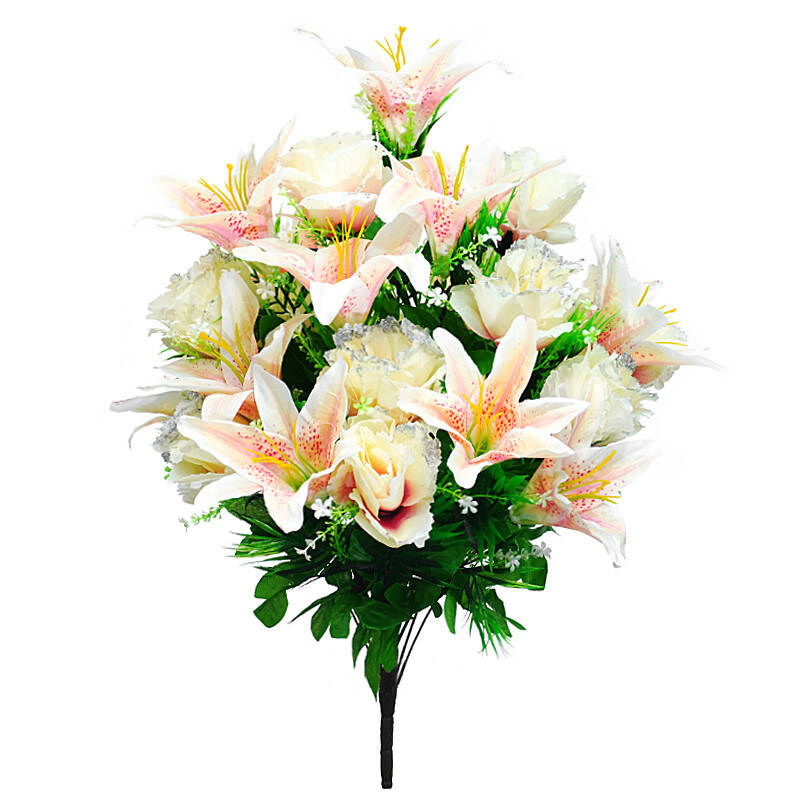 Букет штучний троянда лілія бавовна 16 голів 66 см