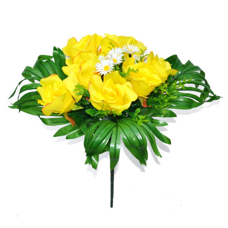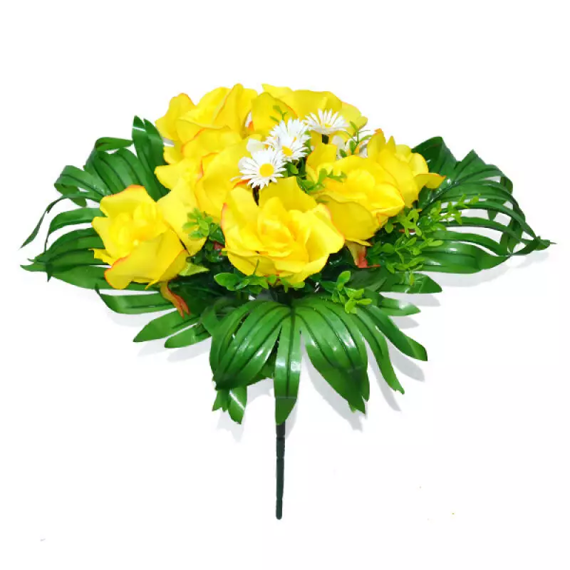 Букет троянд з щільної бавовни з листям 7 голів троянди з ромашкою