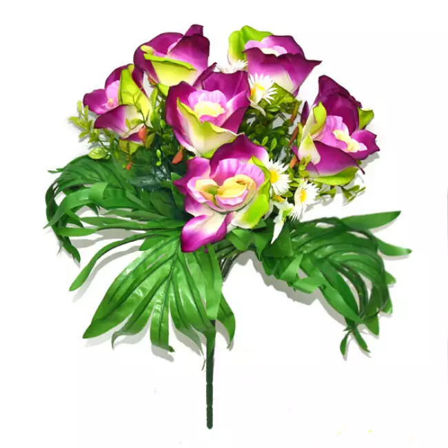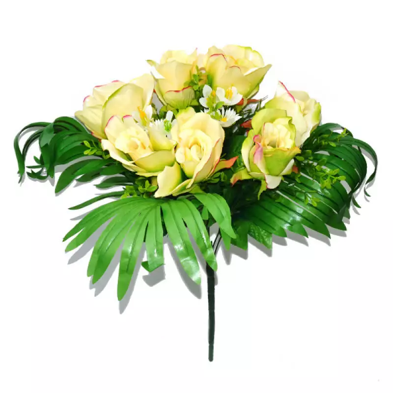 Букет штучний троянда ромашка бавовна 7 голів 40 см