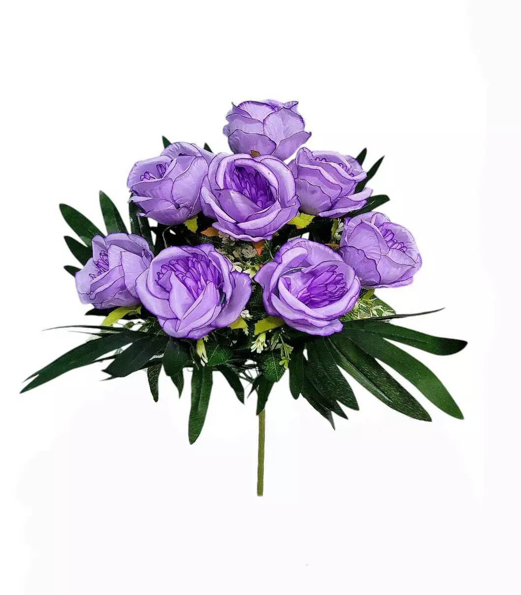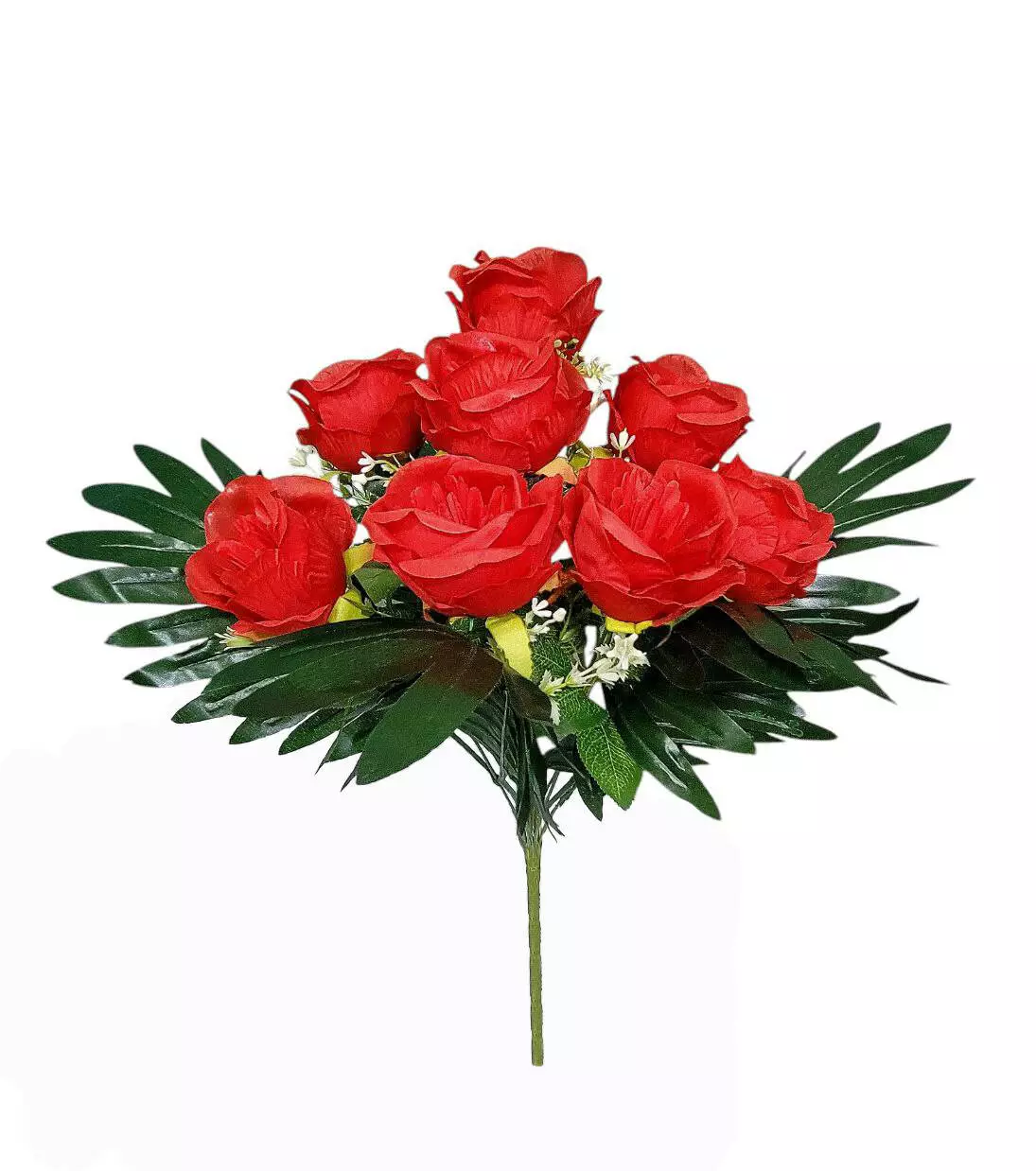 Букет штучний троянда з шовку на 9 голів, під кожной трояндой по 2