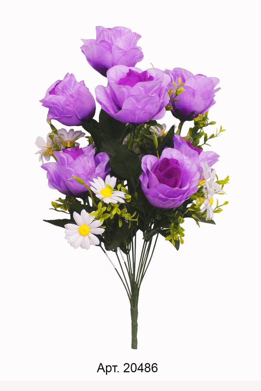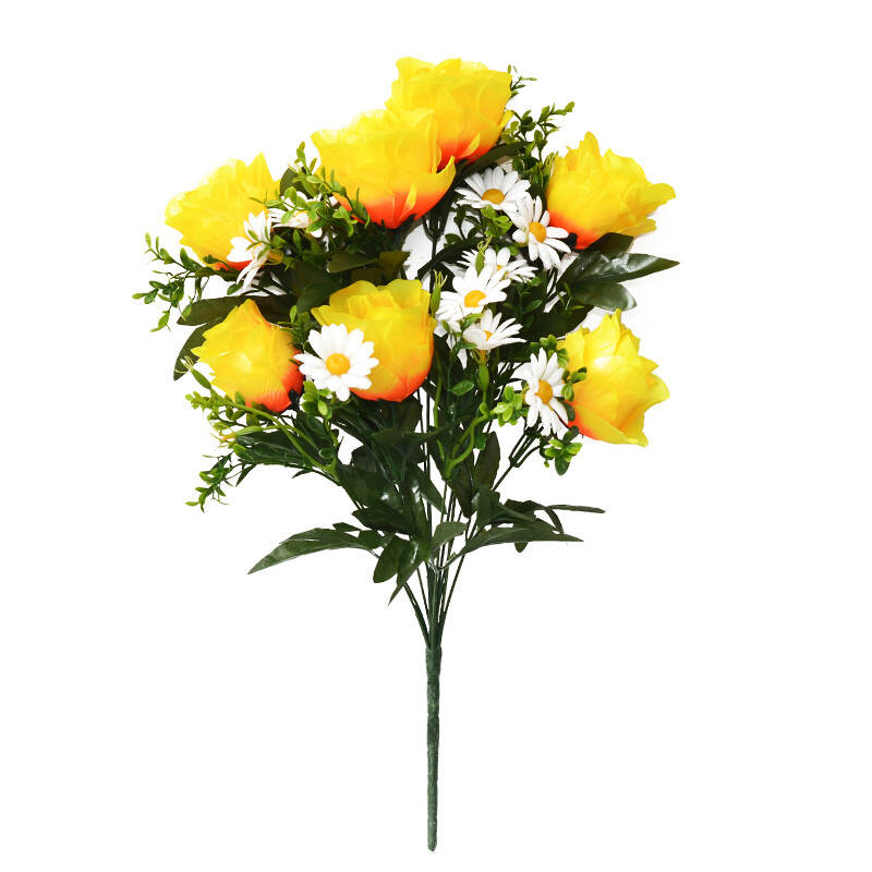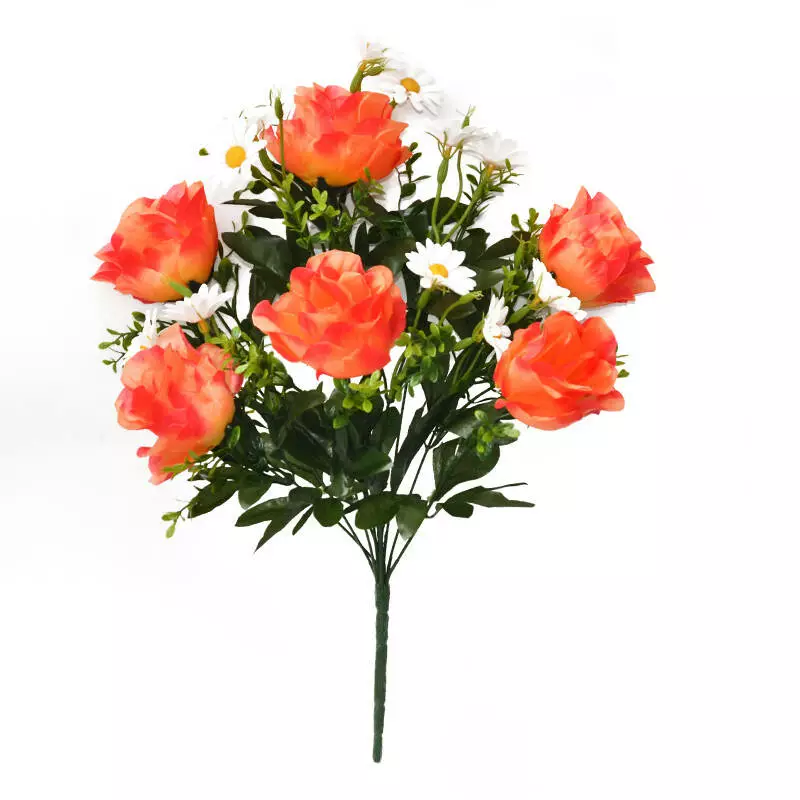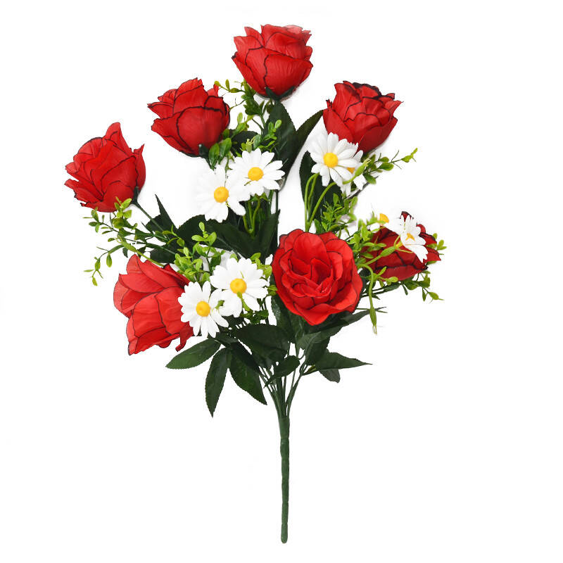 Букет штучний троянда шовк напіврозкрита ромашка 7 голів 57 см 12/7 шт в уп