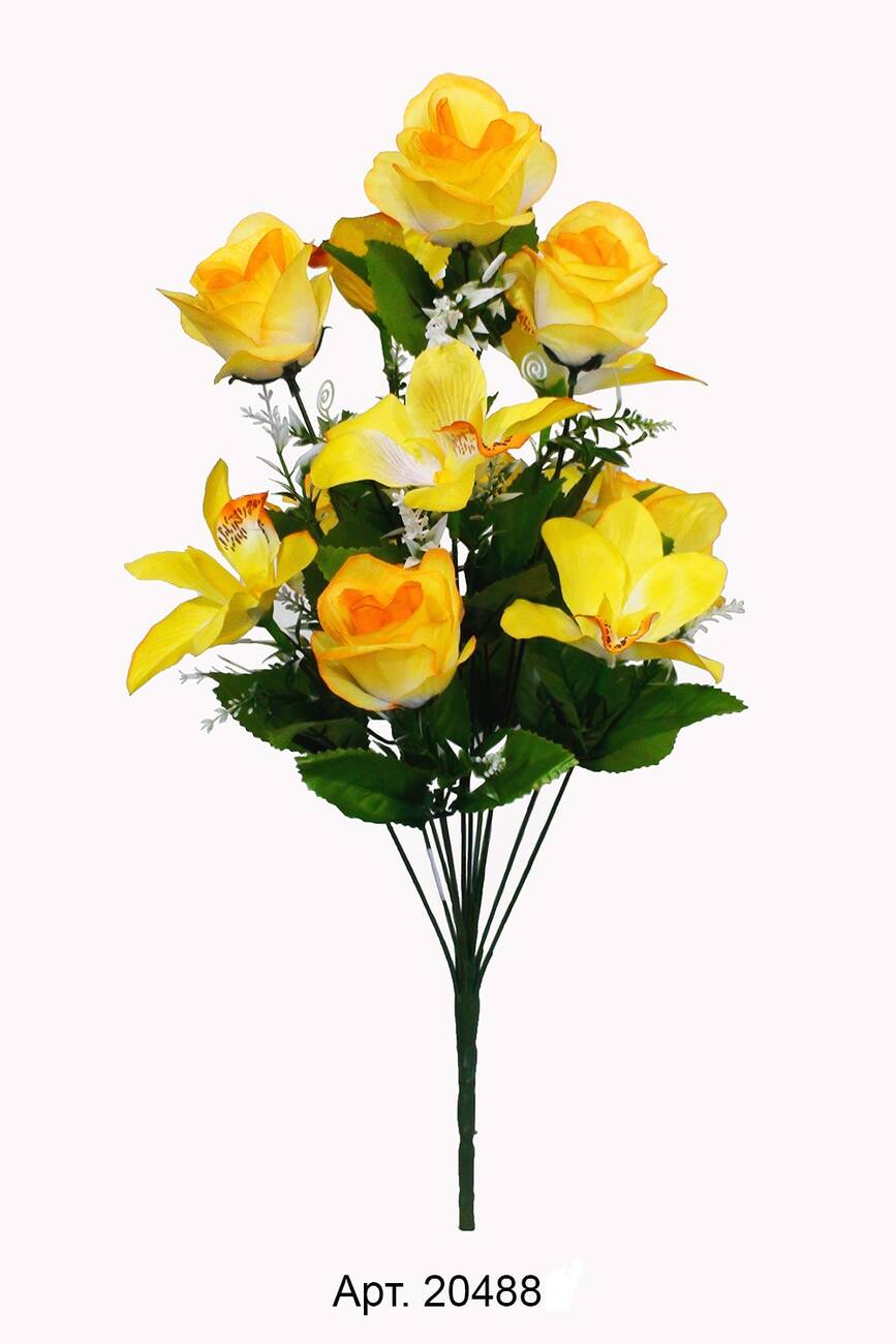 Букет троянди та орхідеї з шовку на 12 голів висотой 58 см. Діаметр