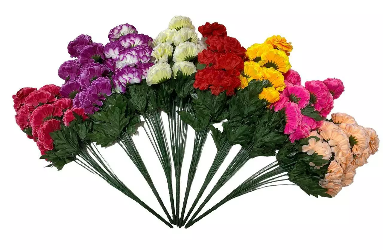 Штучний букет жоржини з шовку. Складається з 18 пишних суцвіть,