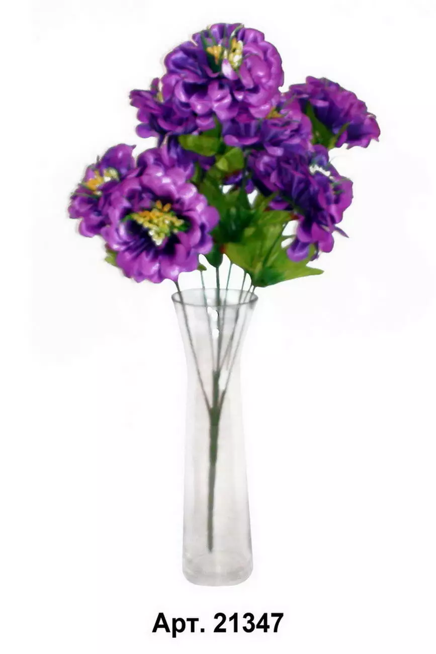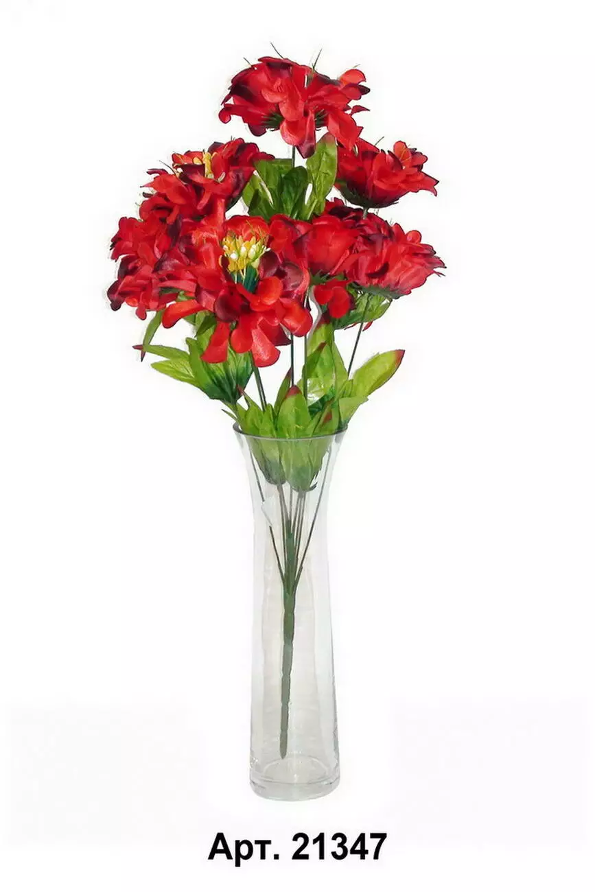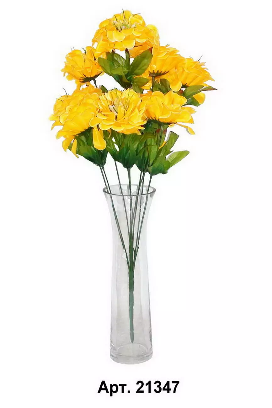 Штучний букет жоржини на 9 голів з шовку, довжина 57 см. У прозорій