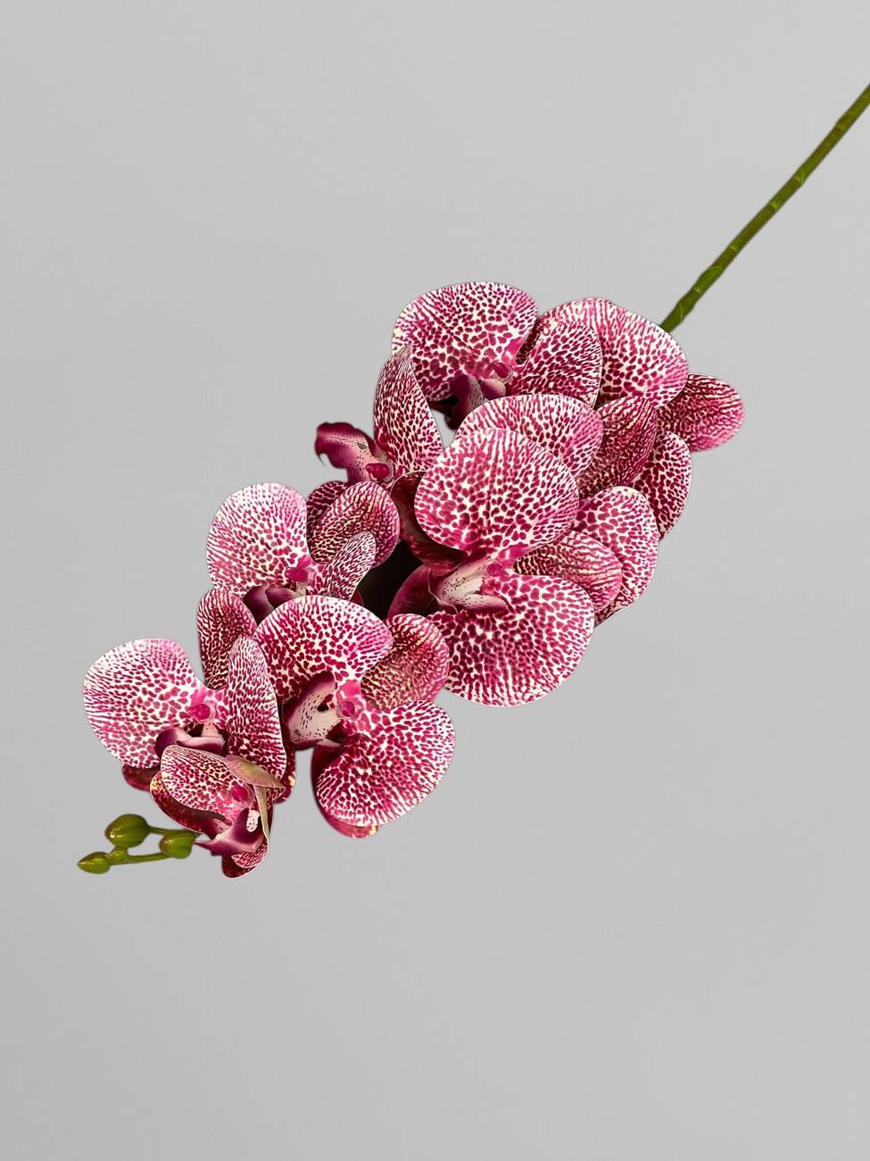 Декоративна гілка орхідеї з латексу на 9 суцвіть, в бордову крапочку, 95 см