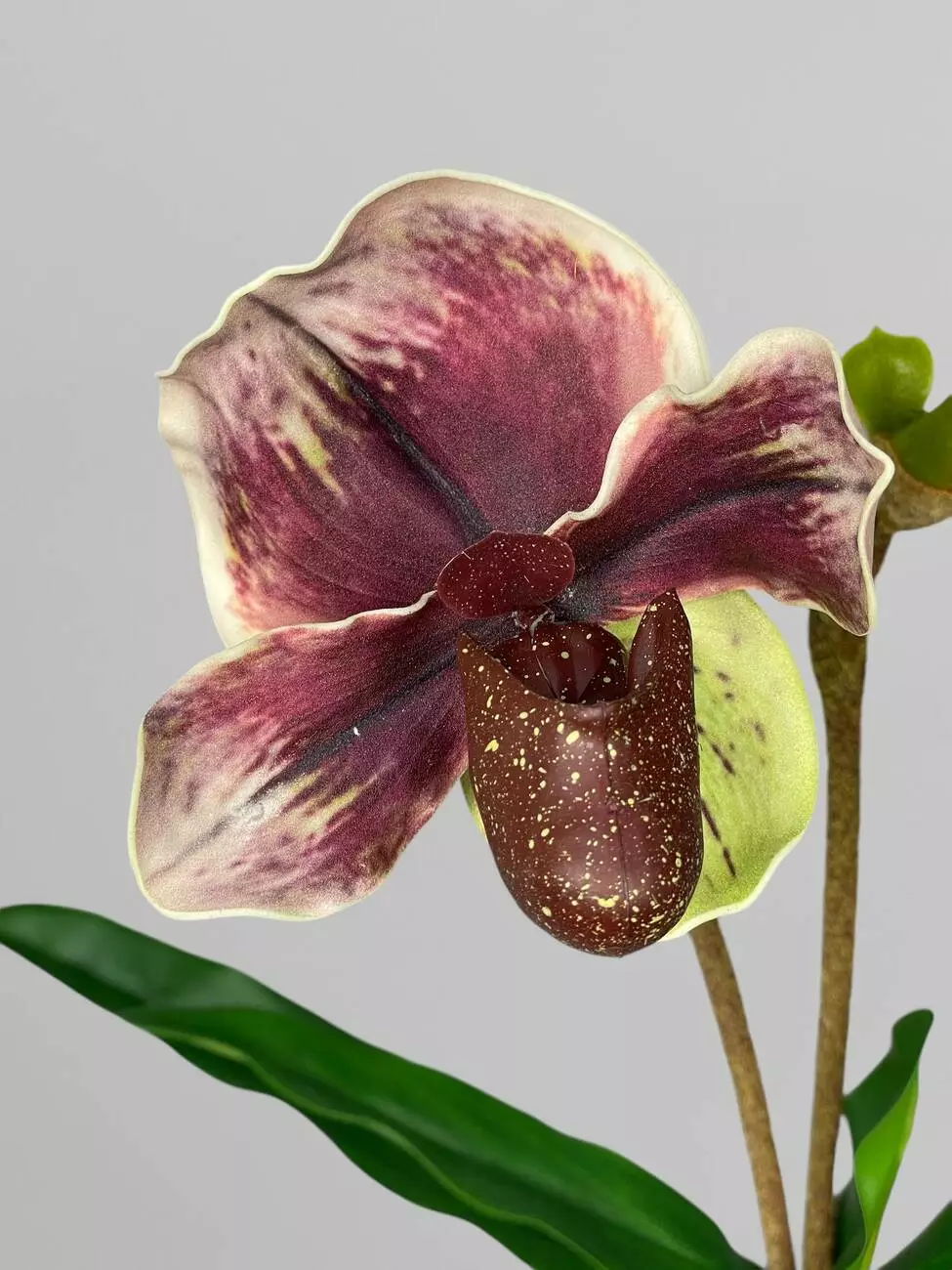 Декоративна орхідея пафіпеодилум мауді, бордовий з білими краями, 48 см