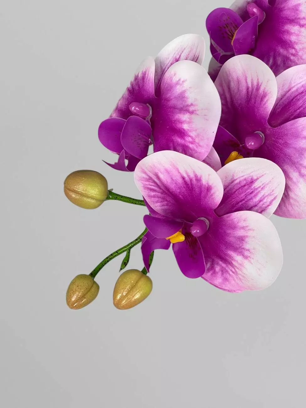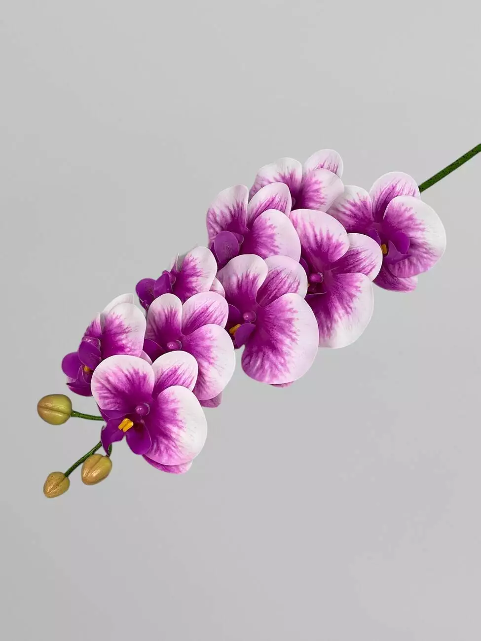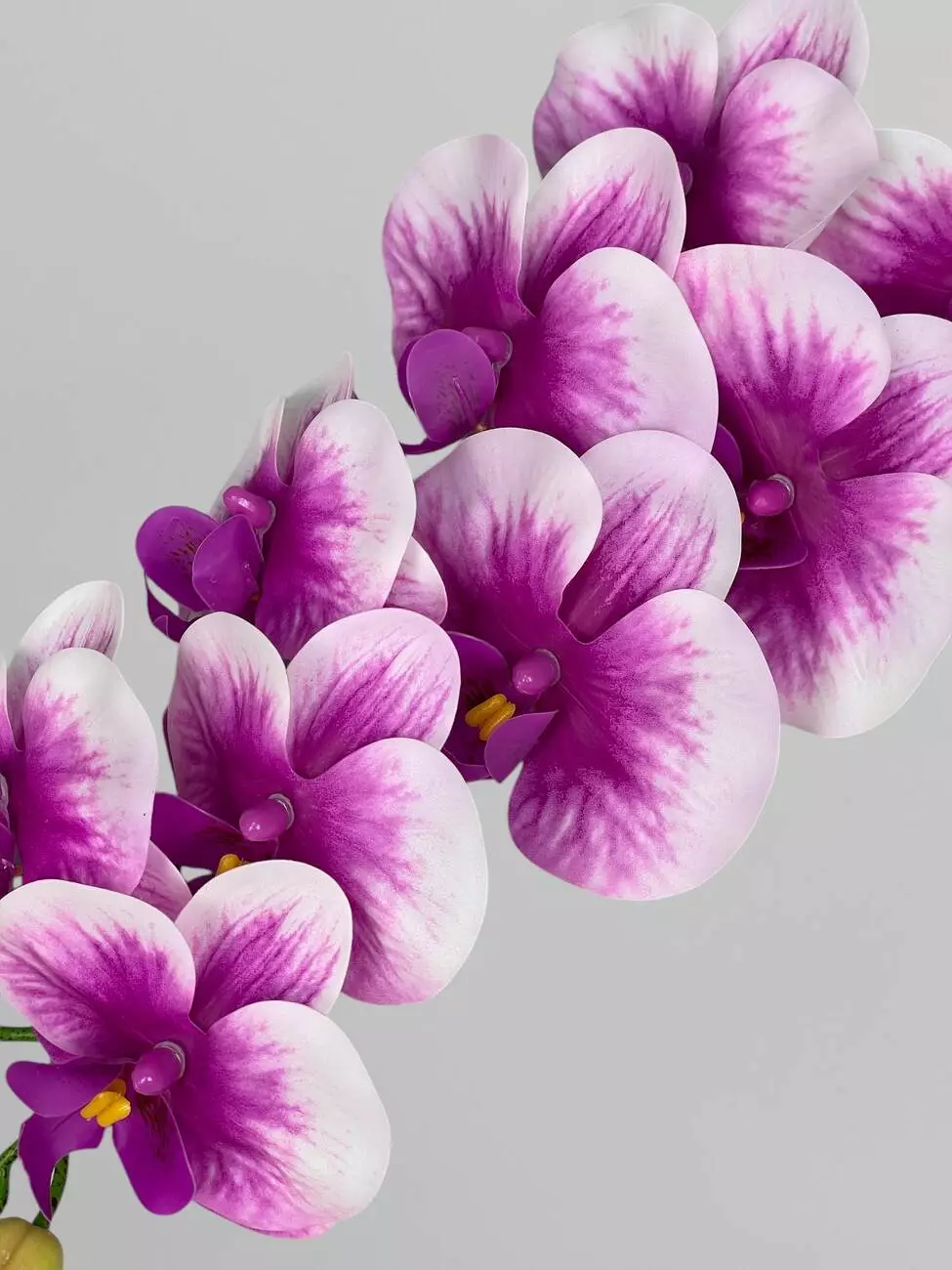 Декоративна штучна орхідея Фаленопсис 9 суцвіть, фуксія з білими краями, 95 см