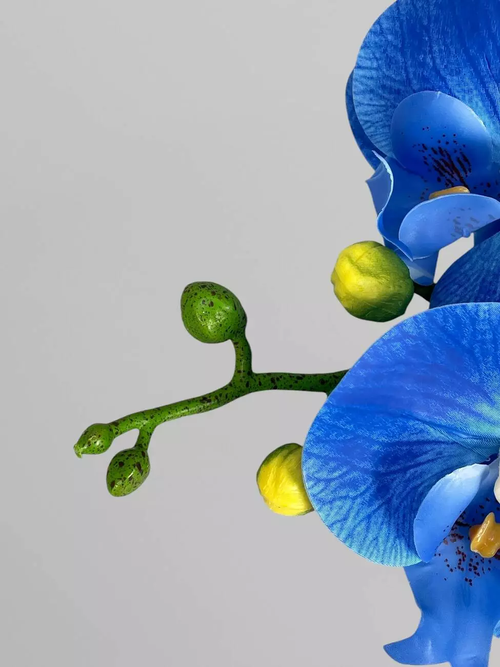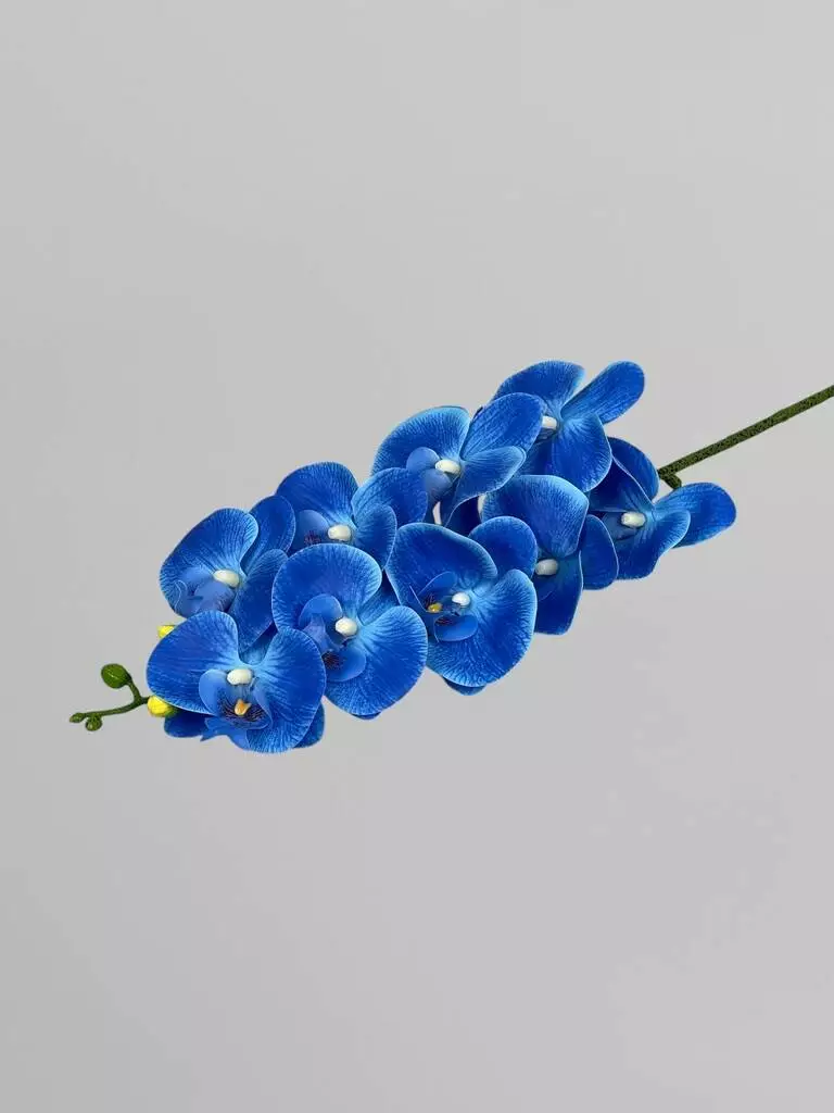 Гілка декоративної орхідеї Фаленопсис 9 суцвіть, латекс, синій, 95 см