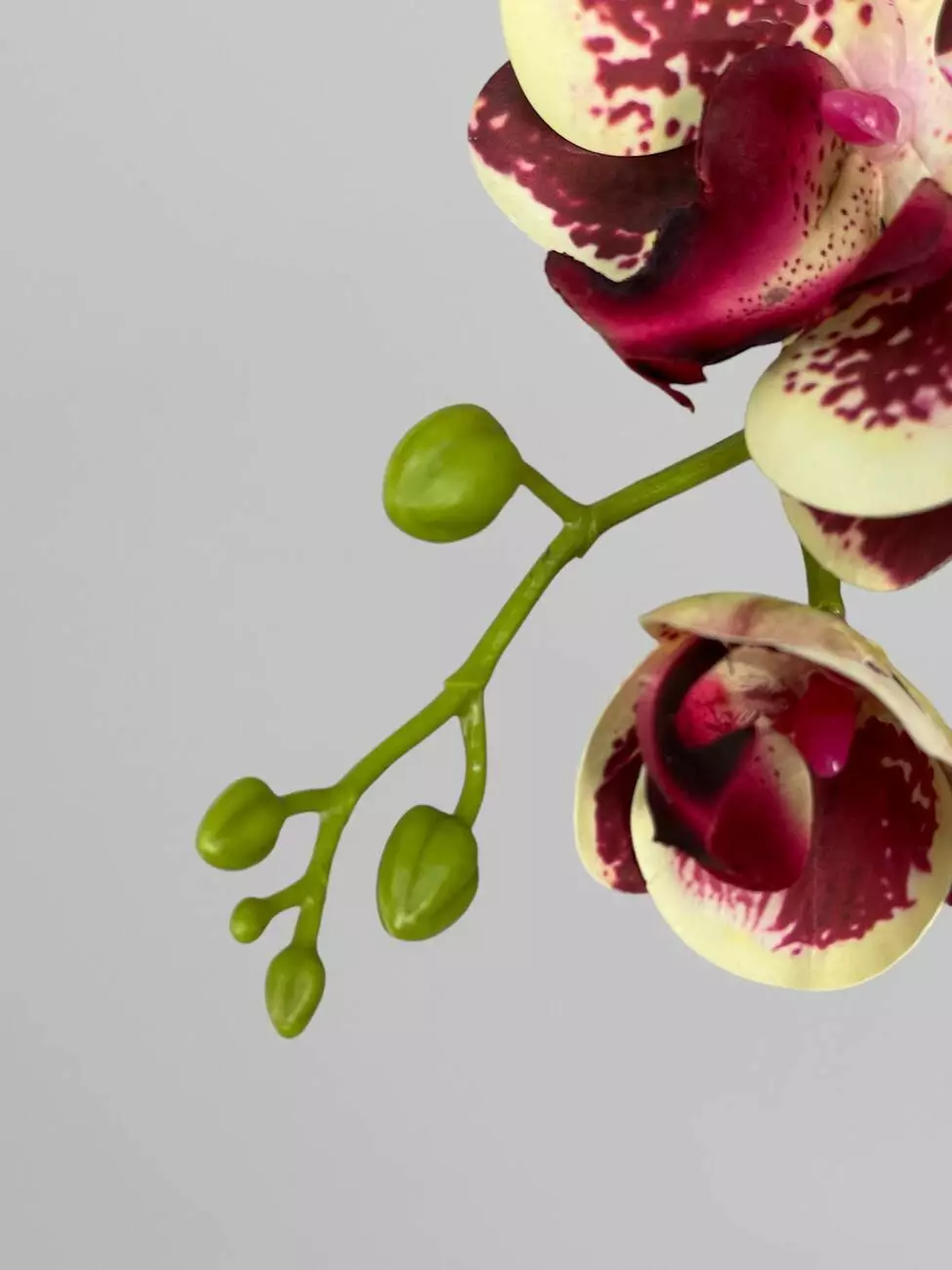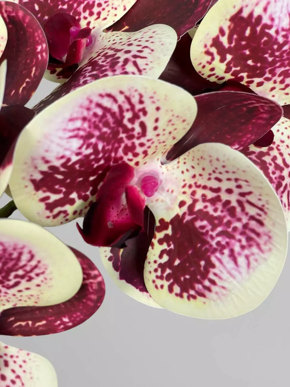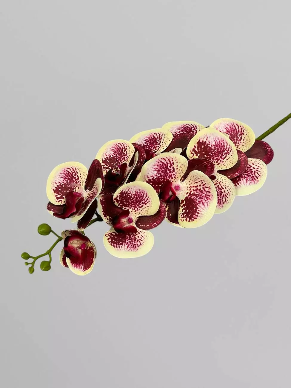 Гілка орхідеї штучна на 9 суцвіть, кремово-бордовий, 95 см