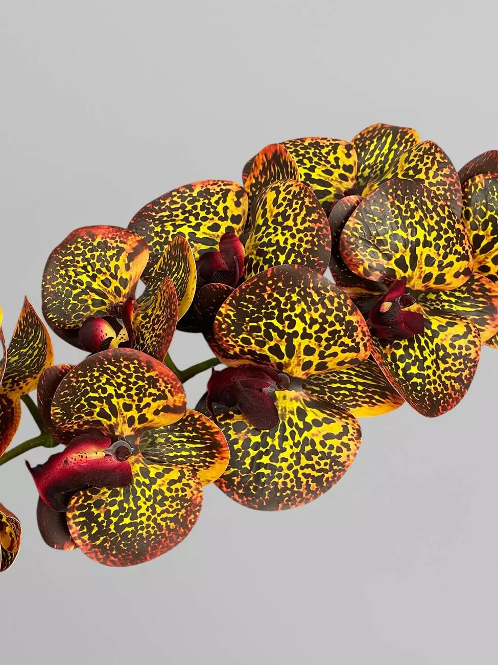 Гілка орхідеї штучна на 9 суцвіть, тигрово-помаранчевий, 95 см