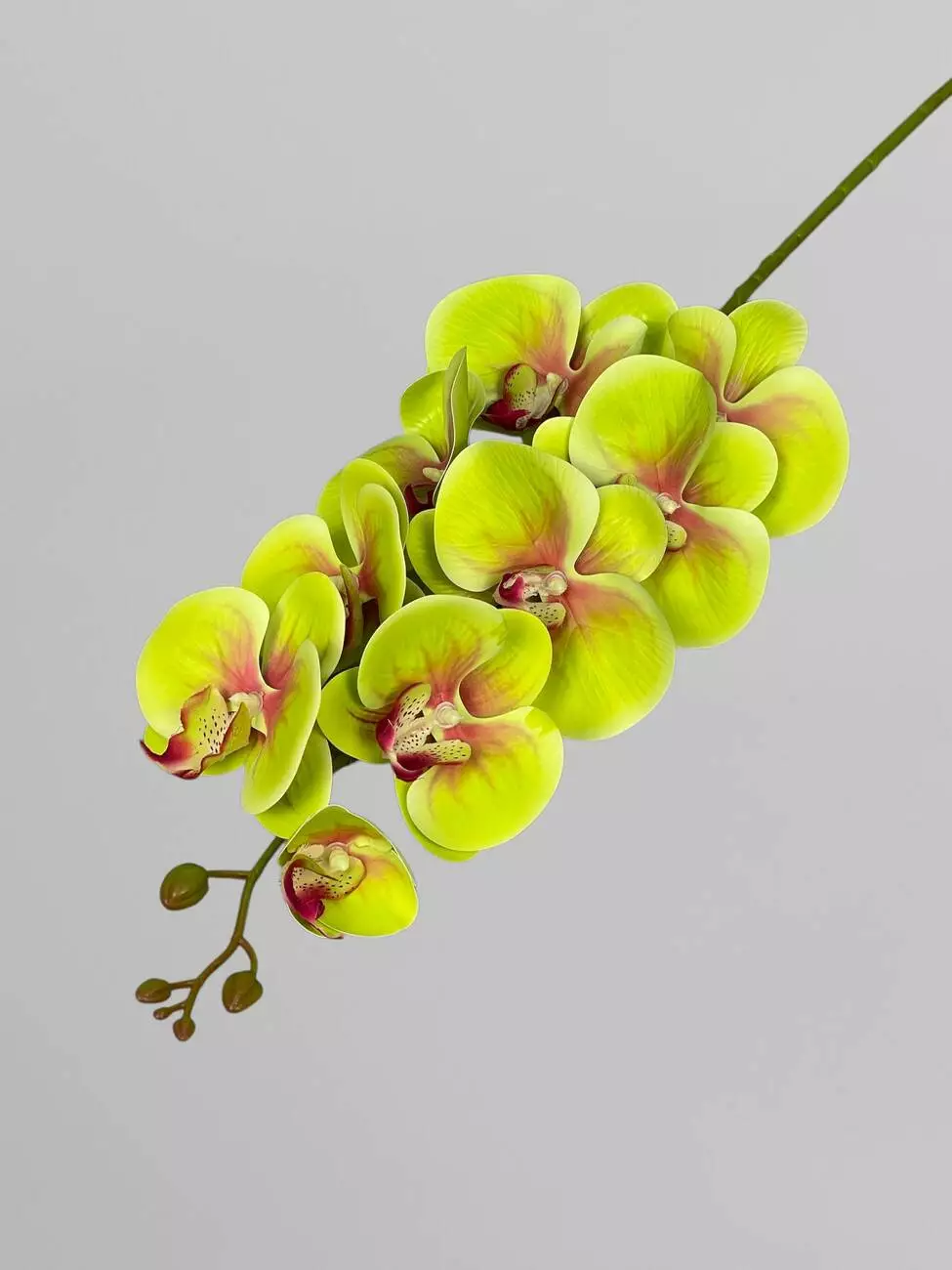 Гілка орхідеї штучна на 9 суцвіть, зелено-рожевий, 95 см