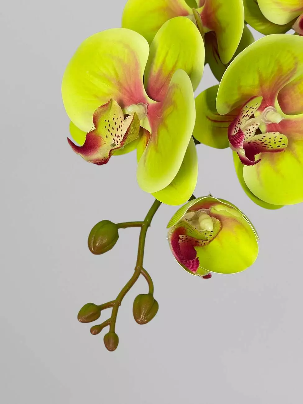 Гілка орхідеї штучна на 9 суцвіть, зелено-рожевий, 95 см