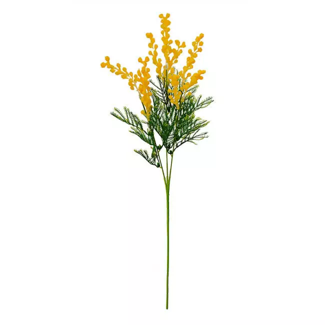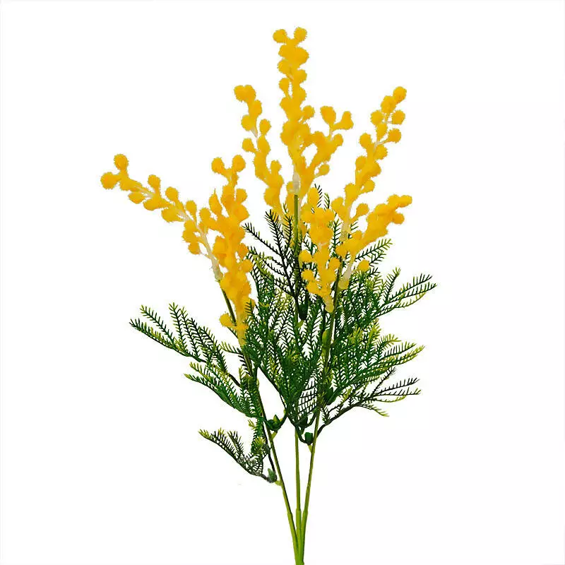 Штучна гілка мімози має 3 маленькі гілочки. На кожній гілочці
