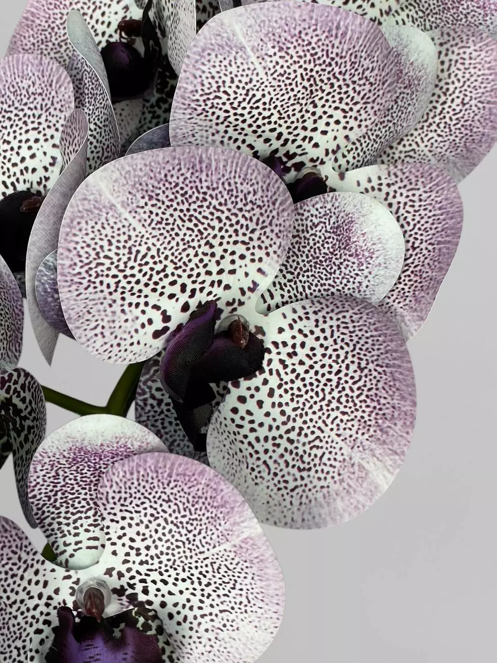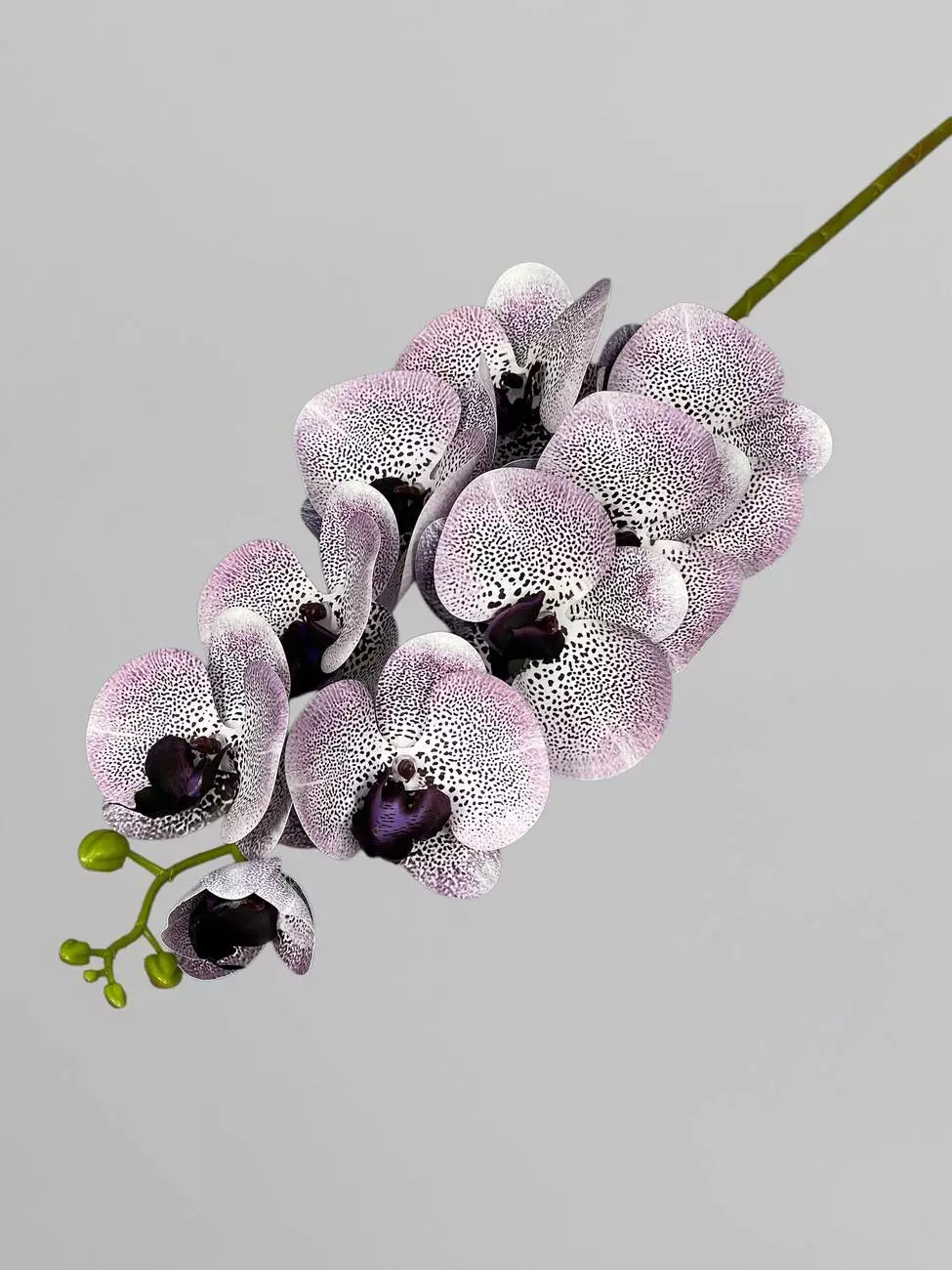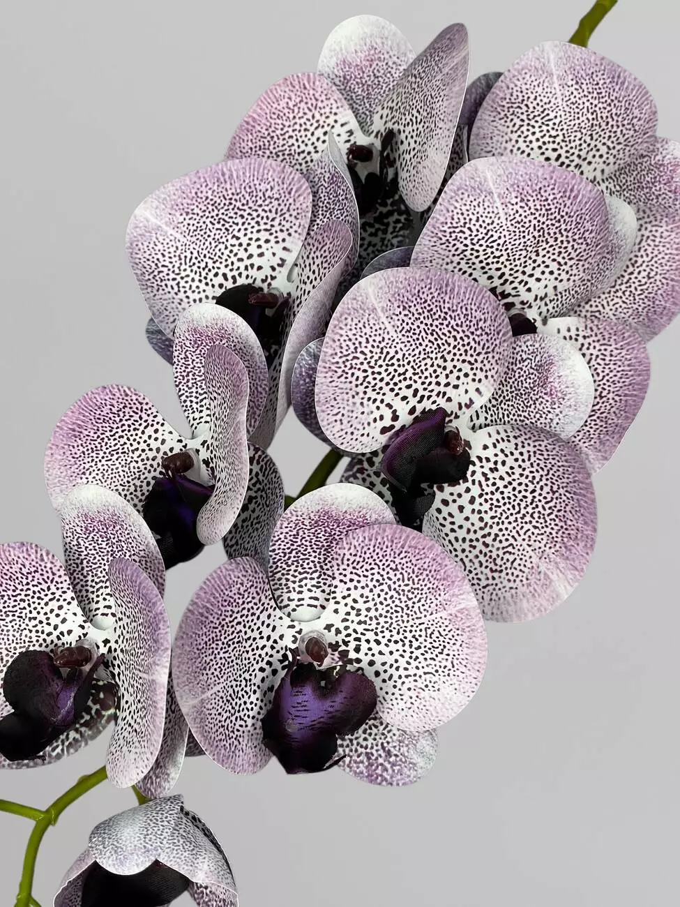 Гілка з квітами орхідеї штучна латексна на 9 суцвіть, ніжно-бузковий з дрібними чорними цятками, 95 см