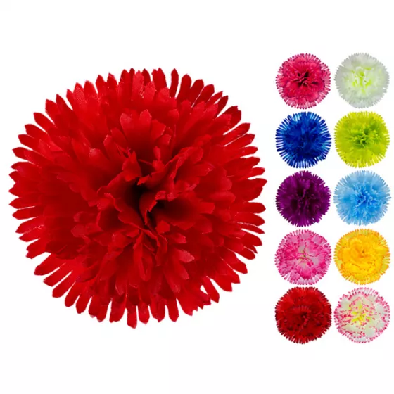 Штучна голова гвоздики з шовку діаметром 14 см. Кольорова гамма з