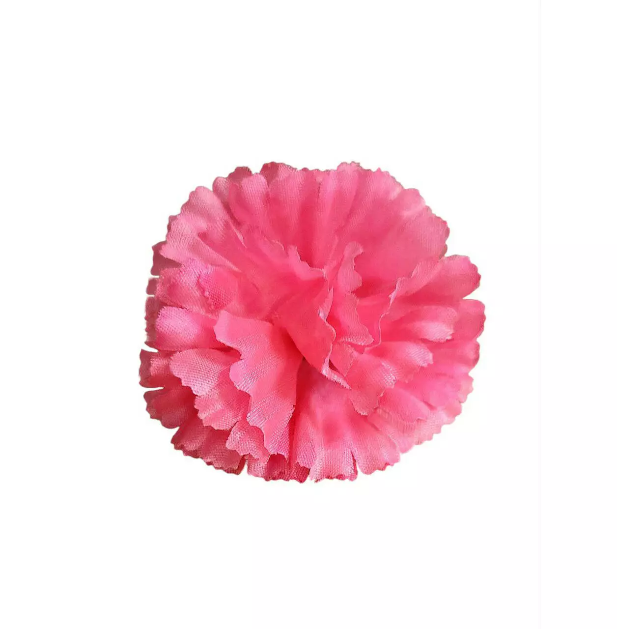 Штучна голова гвоздики з шовку діаметром 9 см. У прозорій фабричній