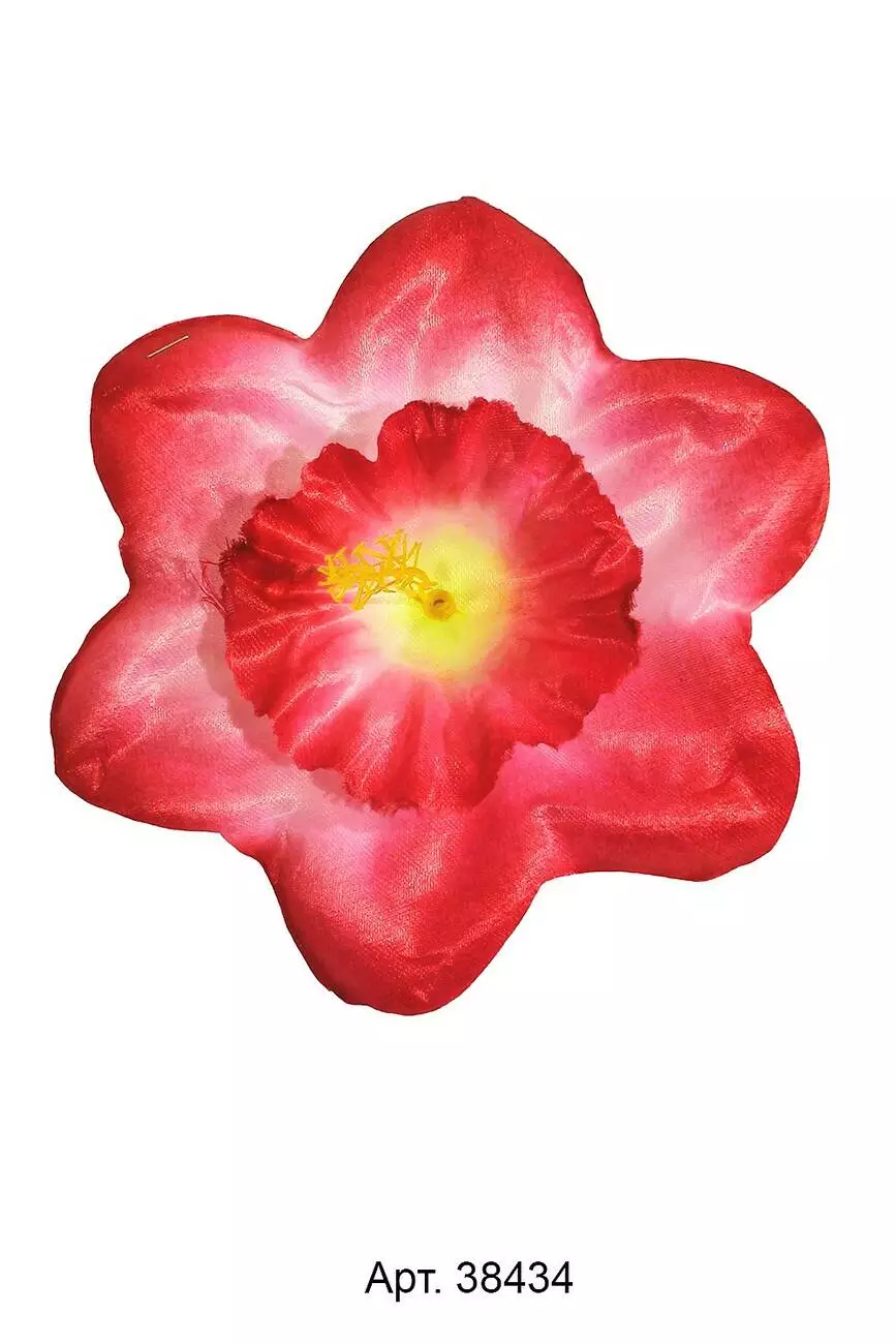 Штучна яскрава прес-квітка нарциса з атласу діаметром 16 см. У