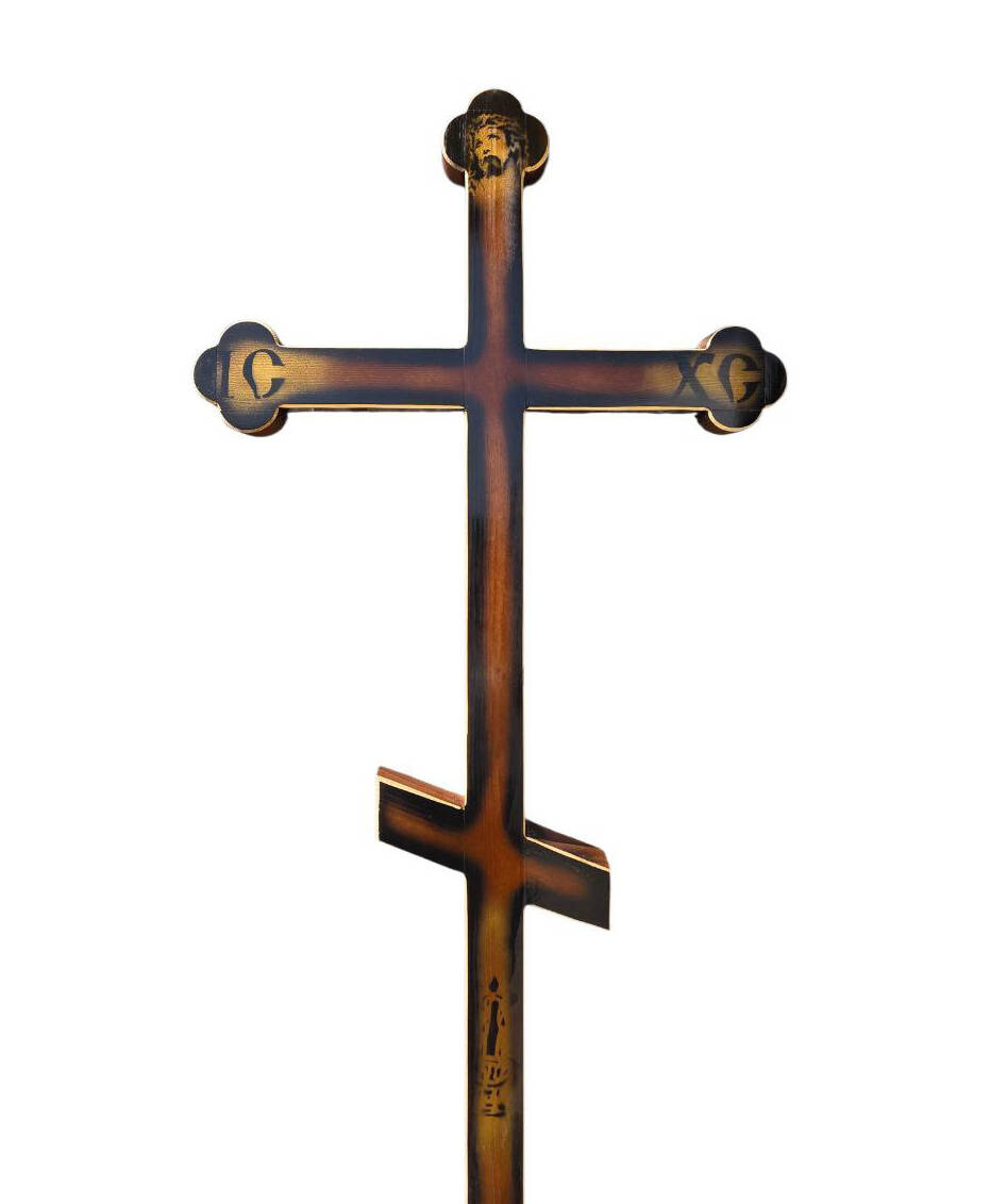 Хрест подвійний фігурний з іконой і свічкой, розмір 201*63*3см.