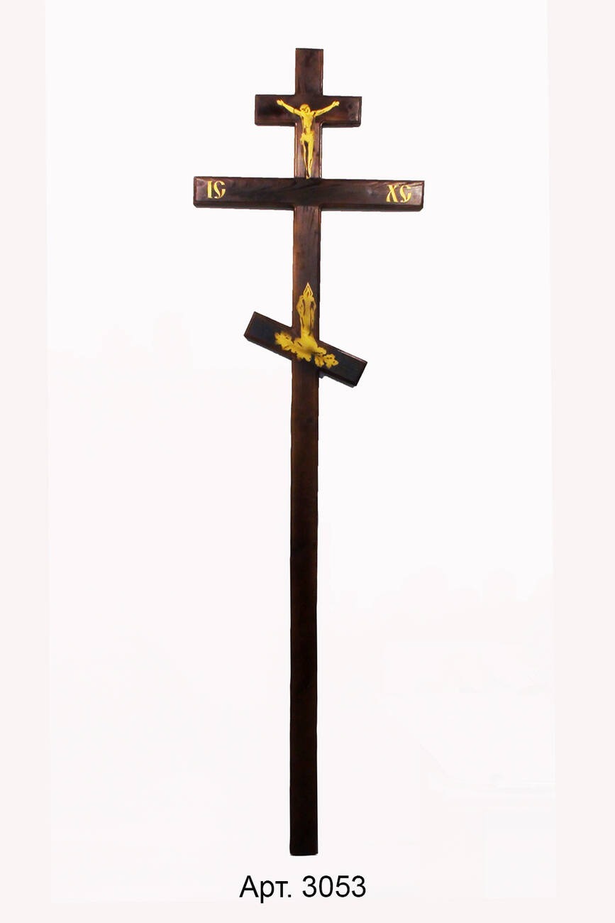 Хрест дерев'яний потрійний прямий розмір 198*55*3см, ширина основи