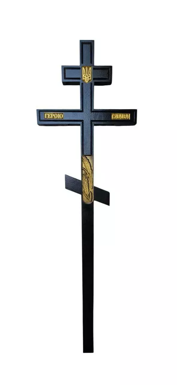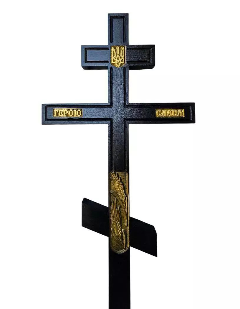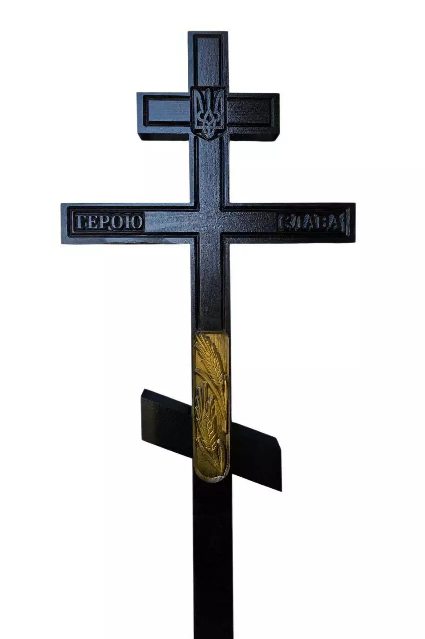 Хрест лаковий різний чорний з написом "Герою слава", гербом,