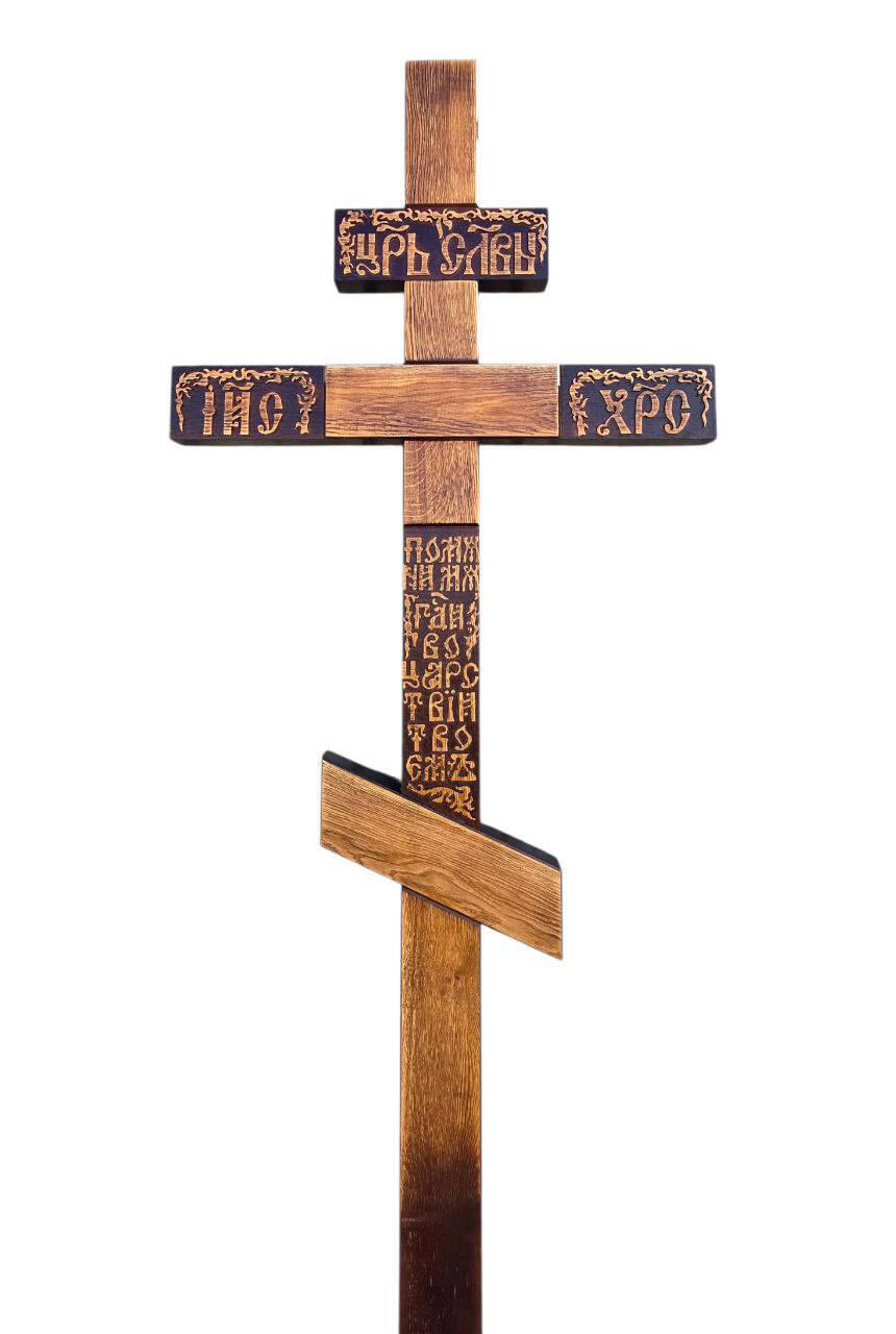 Хрест лаковий різний дуб, розмір 230*78*4,5 см, ширина основи 11