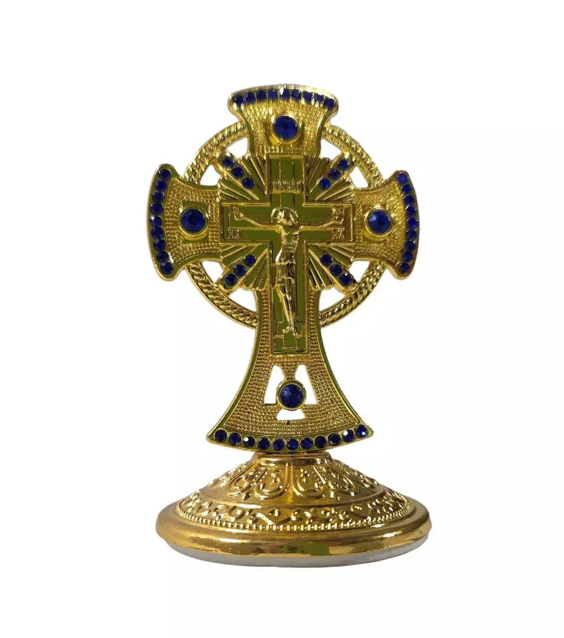 Хрест на підставці для автомобіля золото з камінчиками 8*5 см