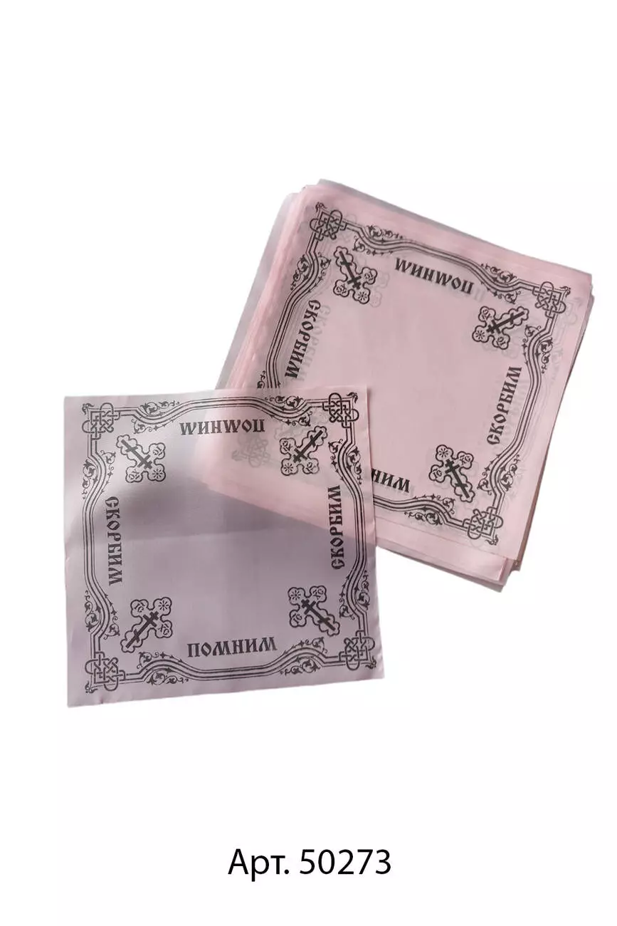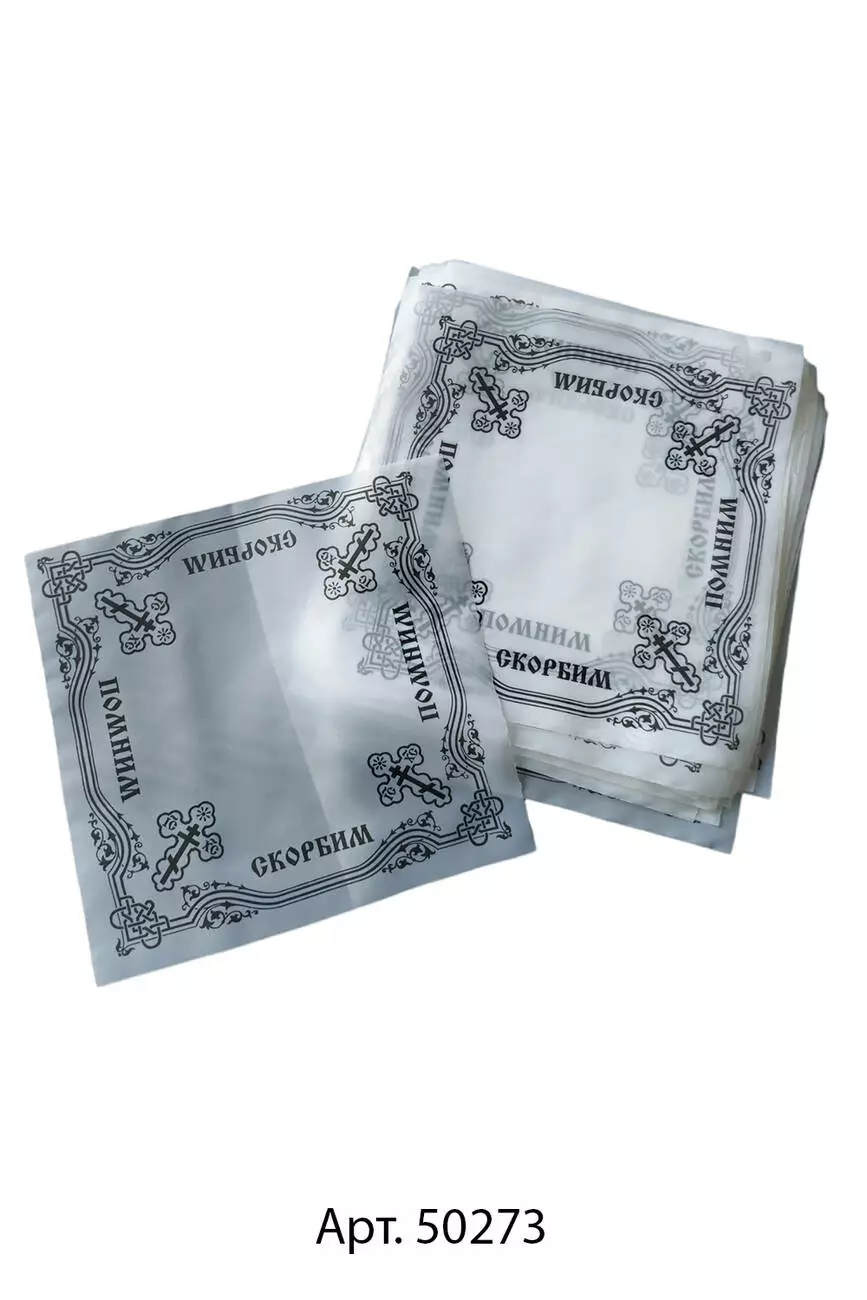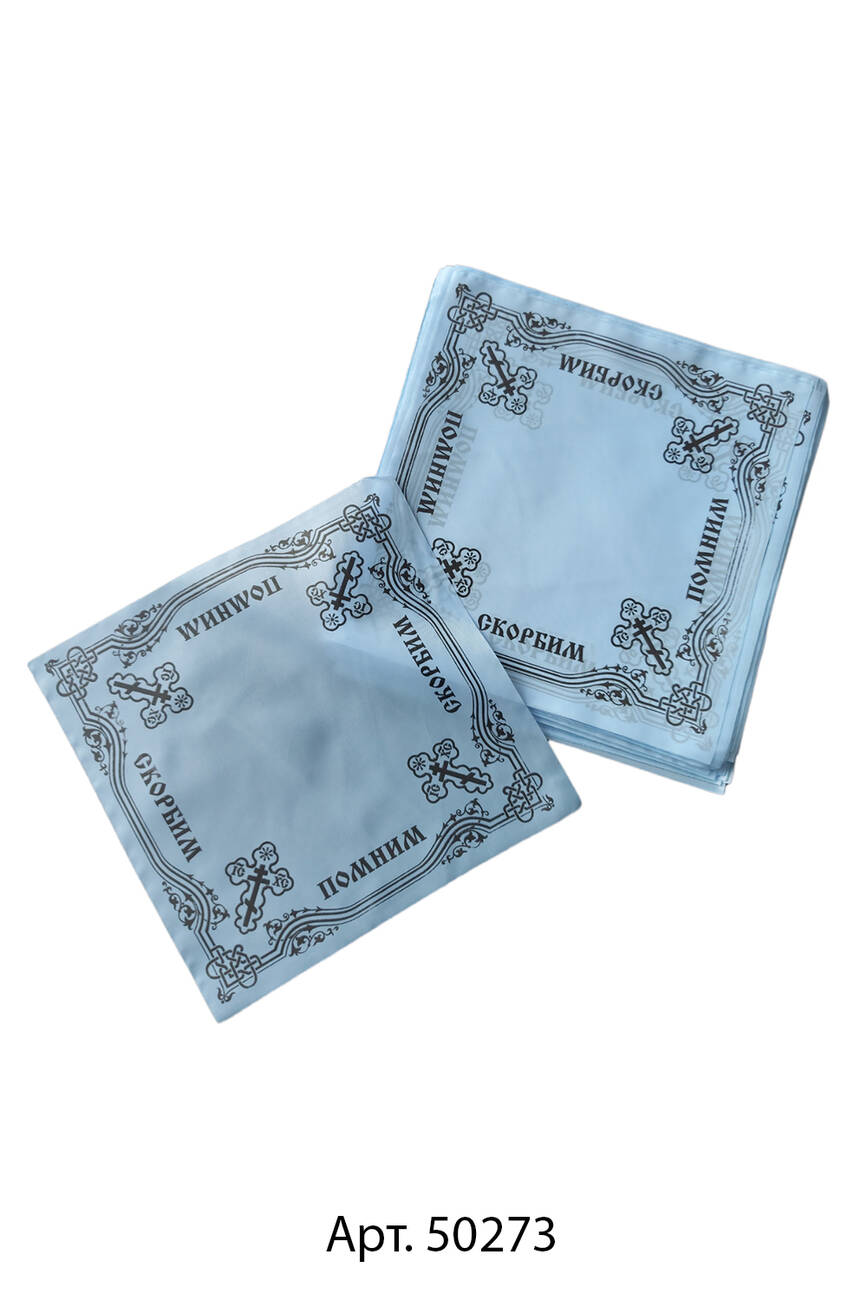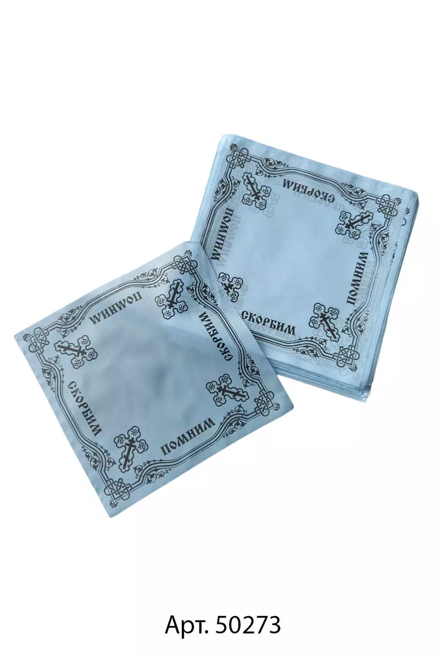 Хустка церковна біла під свічку з написом "Пам'ятаємо, Сумуємо",