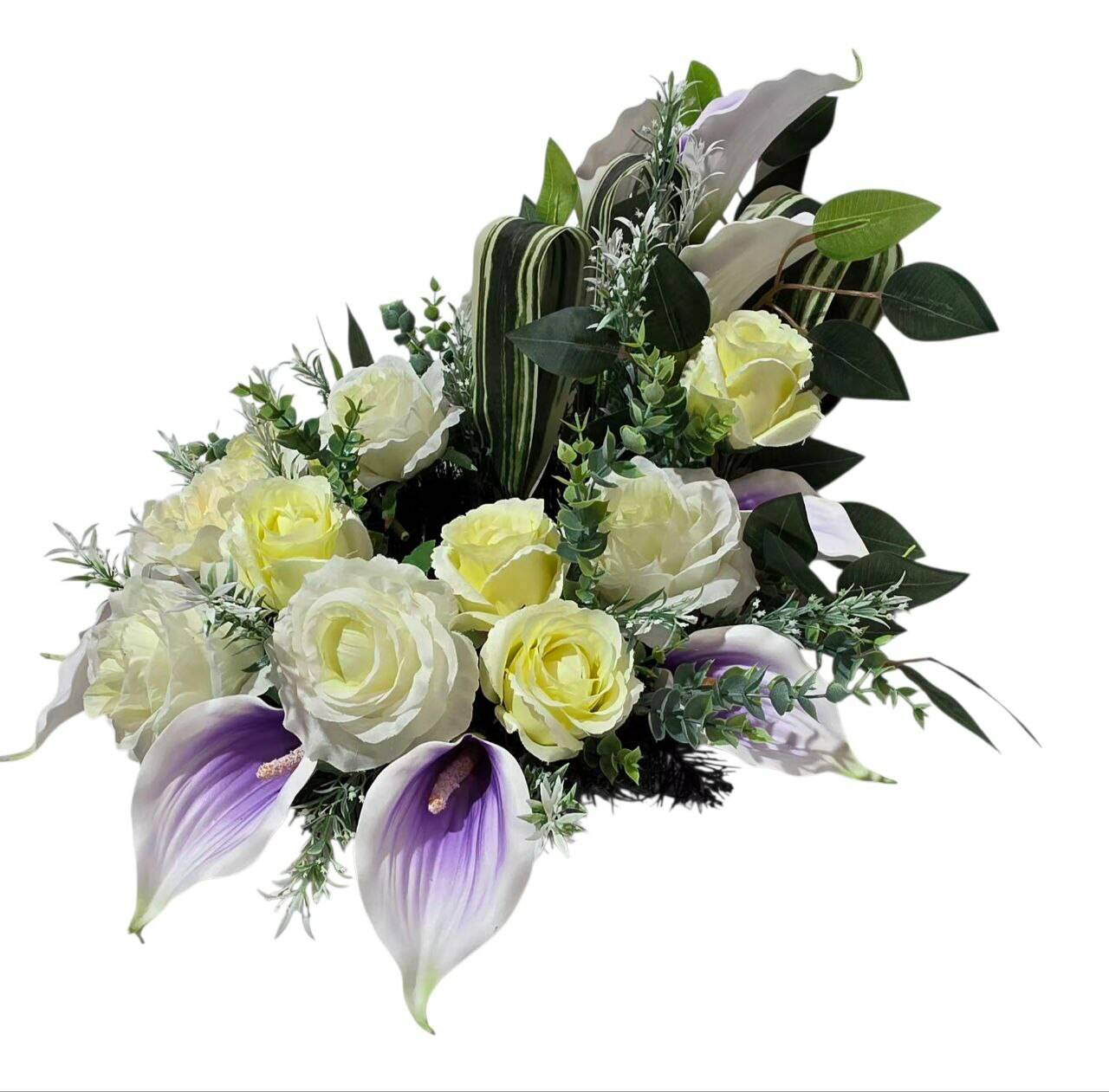 прикрашений головами троянди, півонії, кали, листям сансев'єрії,