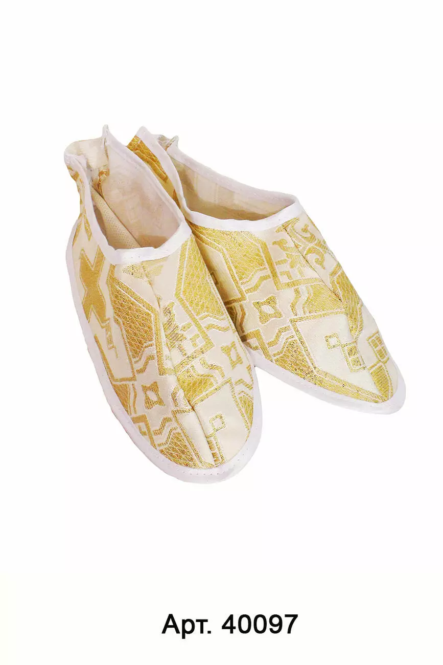 Капці з парчі задник на гумці, кольори білі з золотом, білі зі